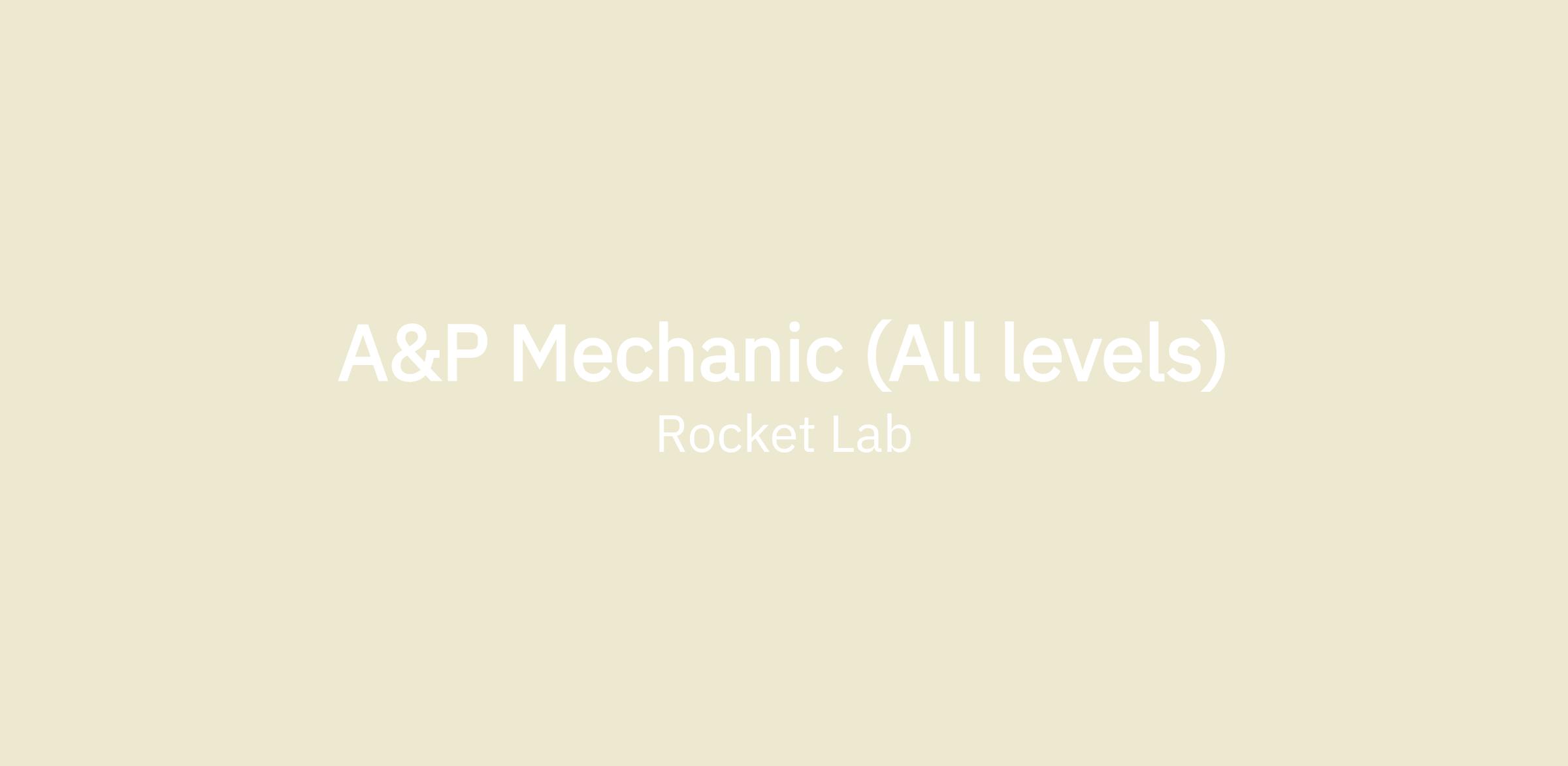We are currently seeking certified A&P Mechanics at several experience levels to join our team. A&P Technicians will be based out of Rocket Lab's Space Structures Complex in Middle River, MD. The A&P Technicians will play a crucial part in build and assembly of Neutron launch vehicle components, will also play a key role in the refurbishment of previously flown launch vehicles.