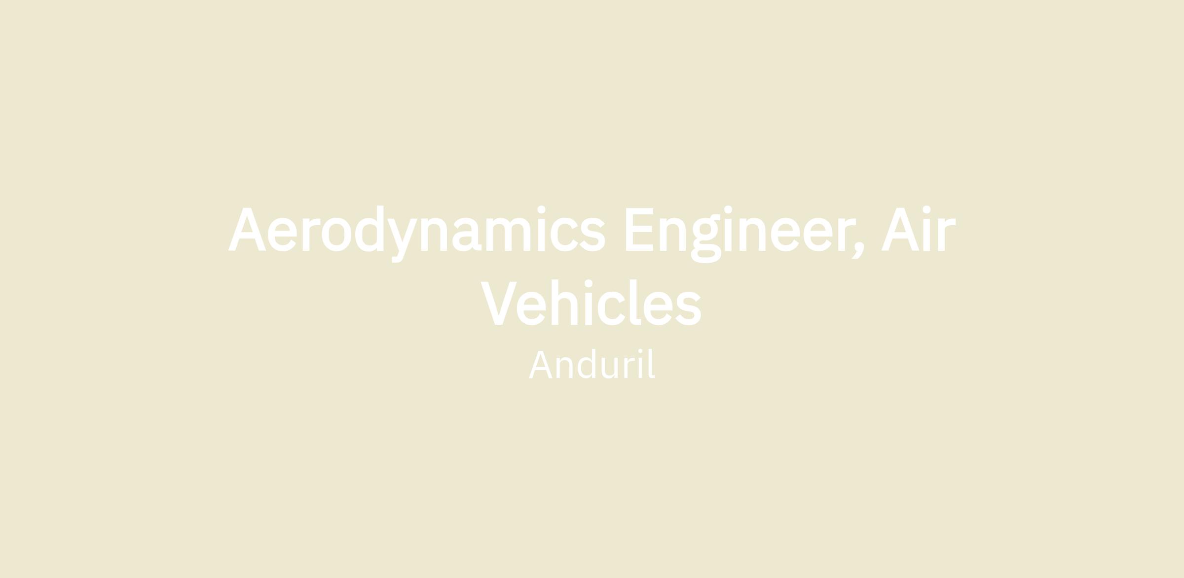 Aerodynamics Engineer, Air Vehicles