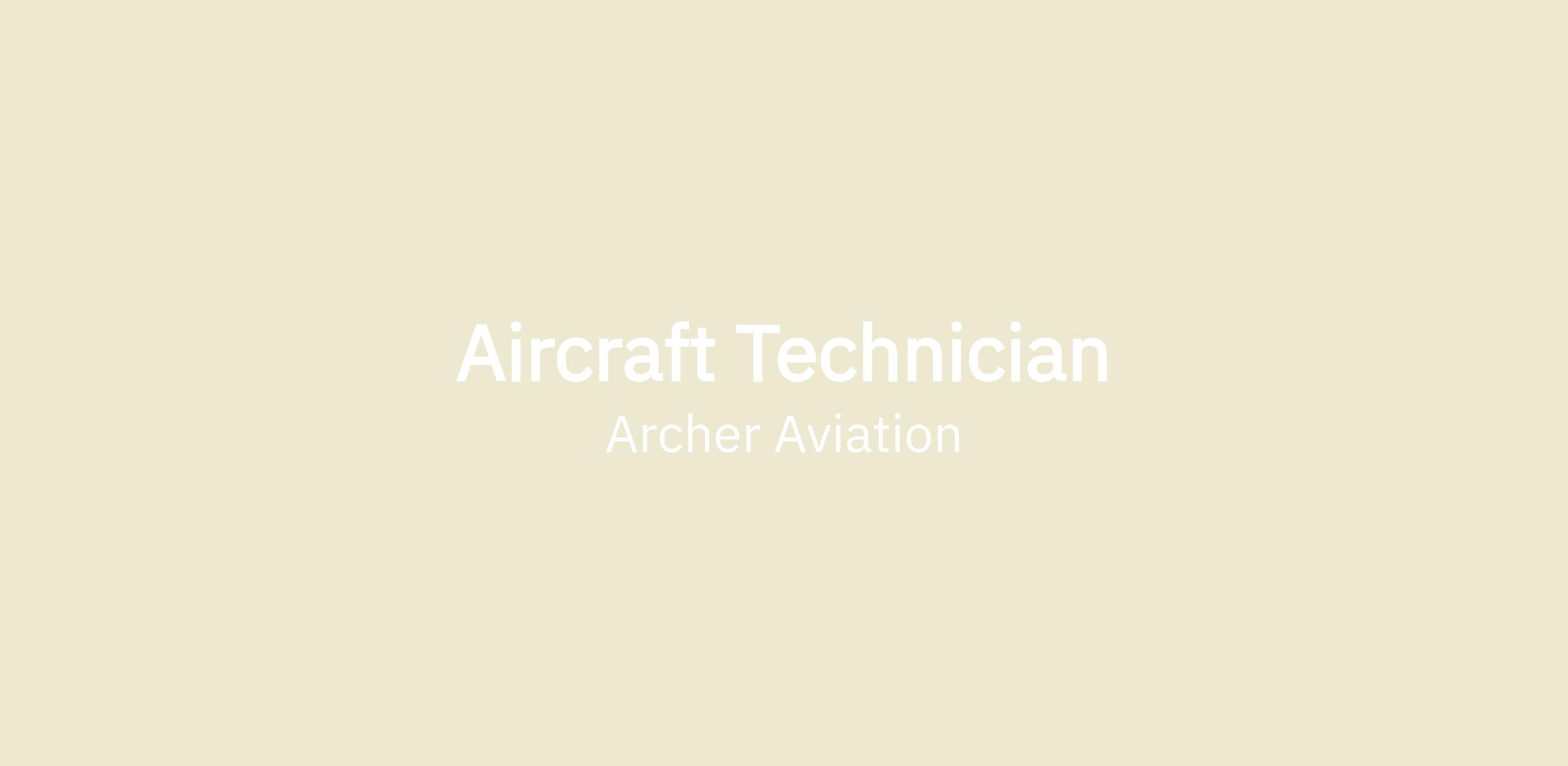 Archer Aviation does not engage with external recruiting agencies/individual recruiters with whom it does not have a prior written agreement. Archer reserves the right to make use of any unsolicited resumes that it receives and bears no responsibility for payment of any fees asserted from the use of unsolicited resumes. If you are a recruiting agency or individual recruiter wishing to do business with Archer, please reach out to People@archer.com. All employment processes are managed by the Archer People Team.