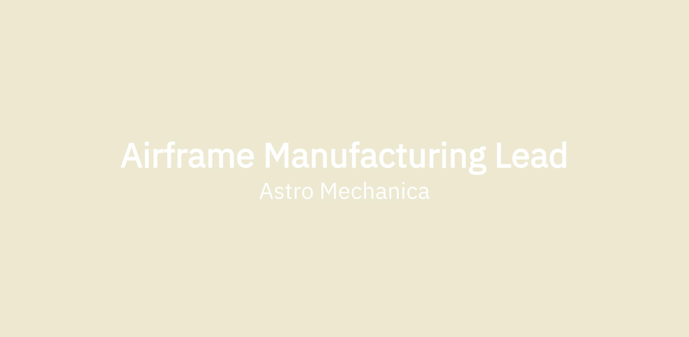 Work with senior engineering leadership to stand up Astro Mechanica’s airframe manufacturing function from scratch, including facilities, workflows, tooling concepts, and technician teams