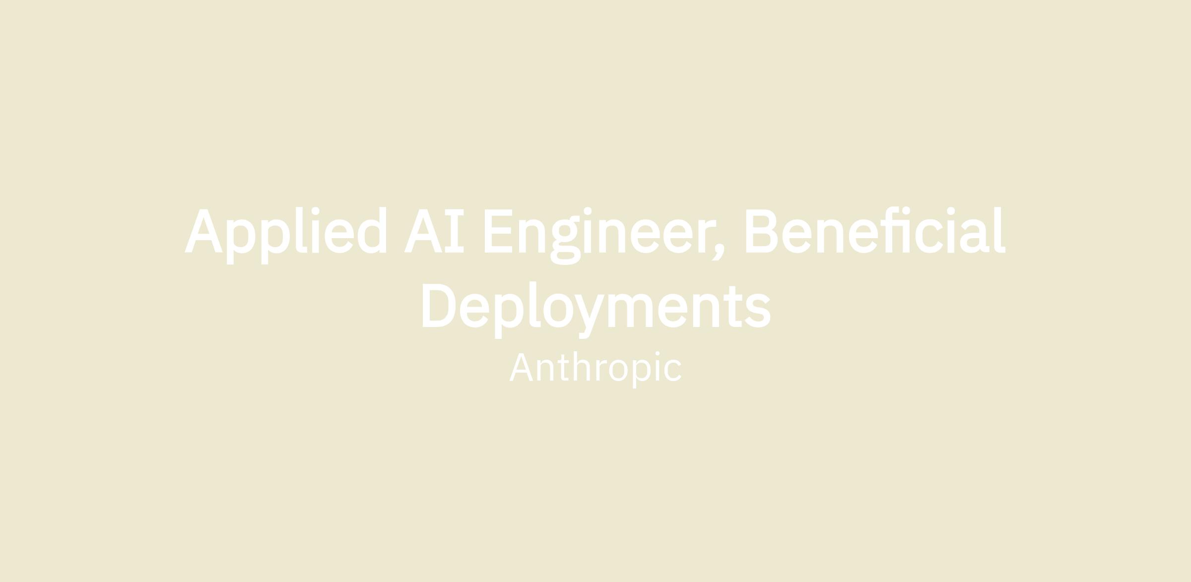 We're looking for an Applied AI Engineer to join our Beneficial Deployments team. You’ll use your deep technical expertise to help partners accelerate their impact through advising on evals, hill-climbing on harnesses, prototyping new agents, etc. You will also work on building ecosystem-level tooling and infrastructure to scale impact beyond individual partnerships.