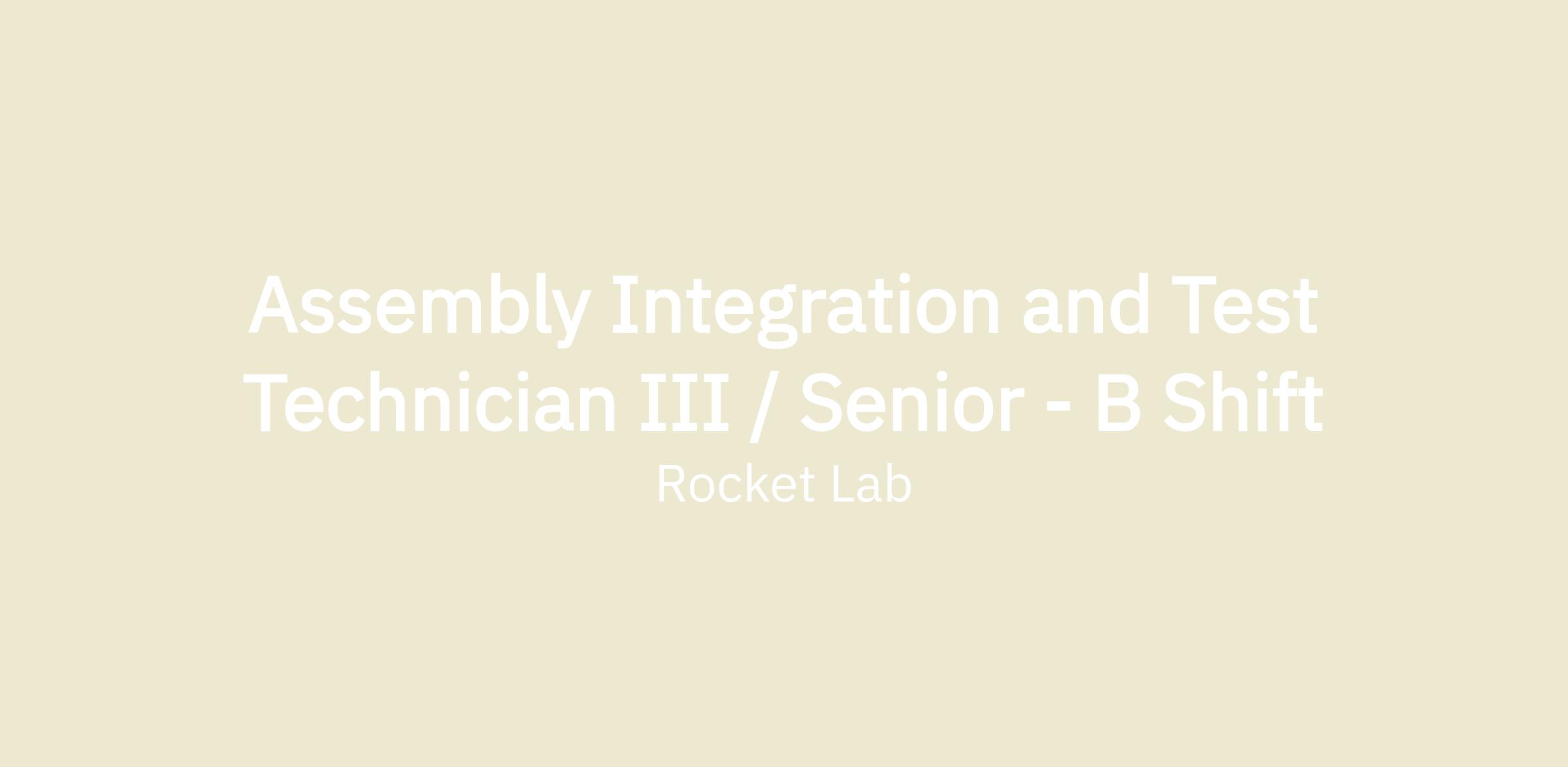 ASSEMBLY INTEGRATION & TEST TECHNICIAN III / SENIOR ASSEMBLY INTEGRATION & TEST TECHNICIAN