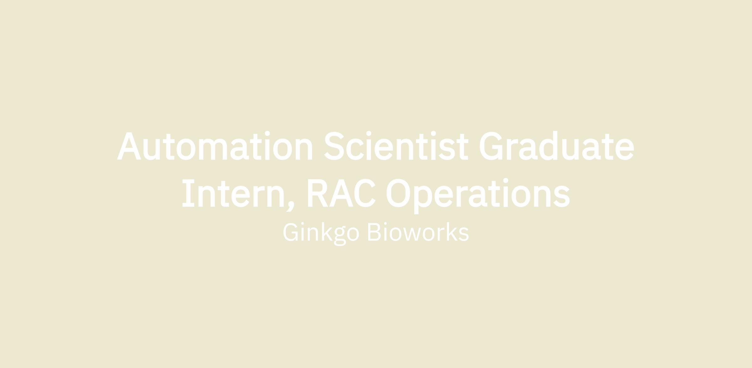 About the Role: Ginkgo Bioworks is deploying a massive fleet of Reconfigurable Automation Cells (RACs)—modular, mobile robotic units that snap together like LEGOs to form an autonomous lab. We are looking for an Automation Scientist Intern to be the hands-on force behind this fleet. You will learn how to load, operate, take down, and troubleshoot protocol runs on the most advanced lab automation hardware in the world, pushing our "Nebula" frontier lab towards autonomous operation.