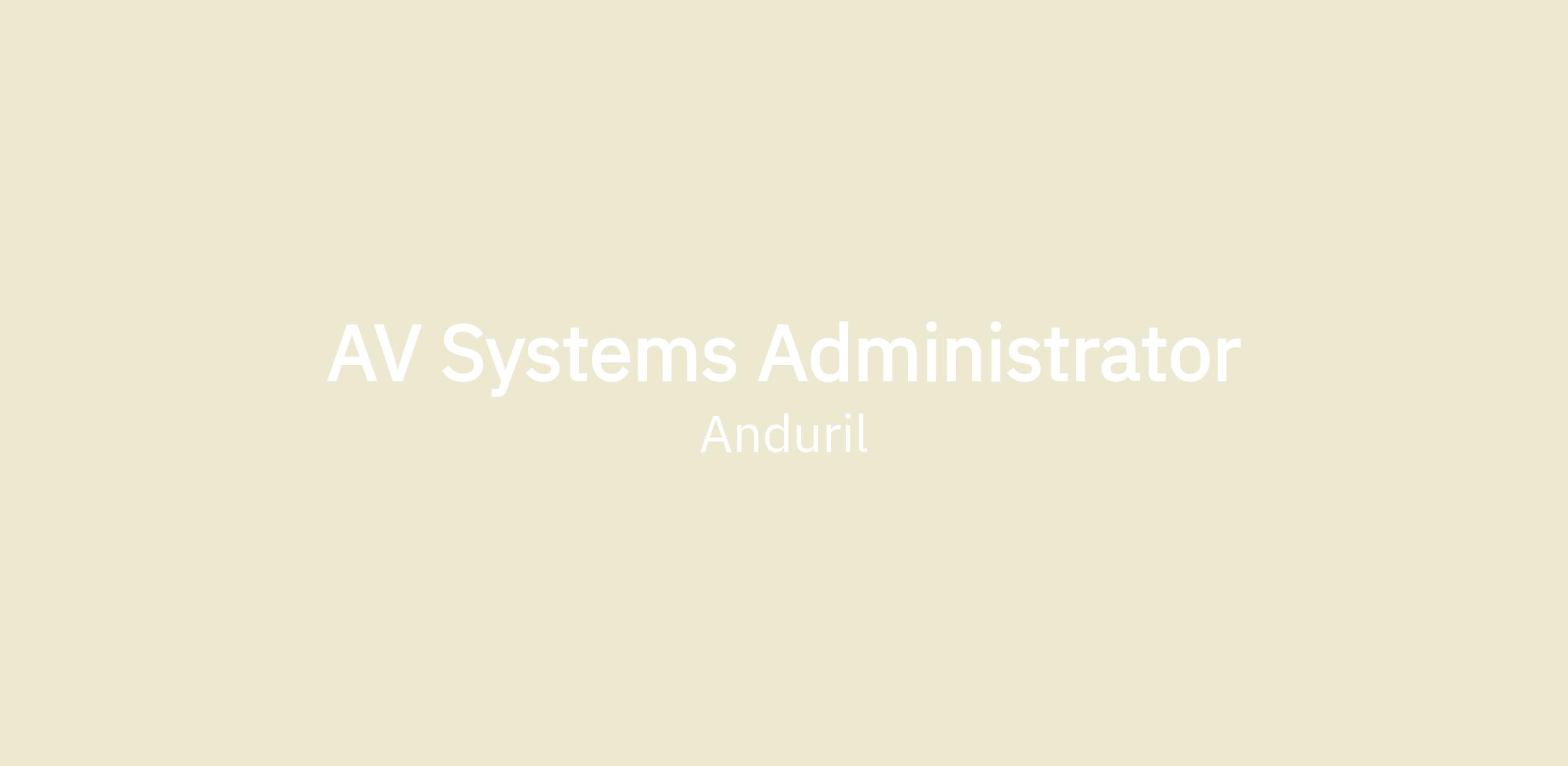 • We are seeking an AV Systems Administrator to maintain and support Anduril's AV infrastructure, ensuring all conferencing systems are operational and users are well-trained. The position is based at our Washington DC location but may involve travel to other sites.
