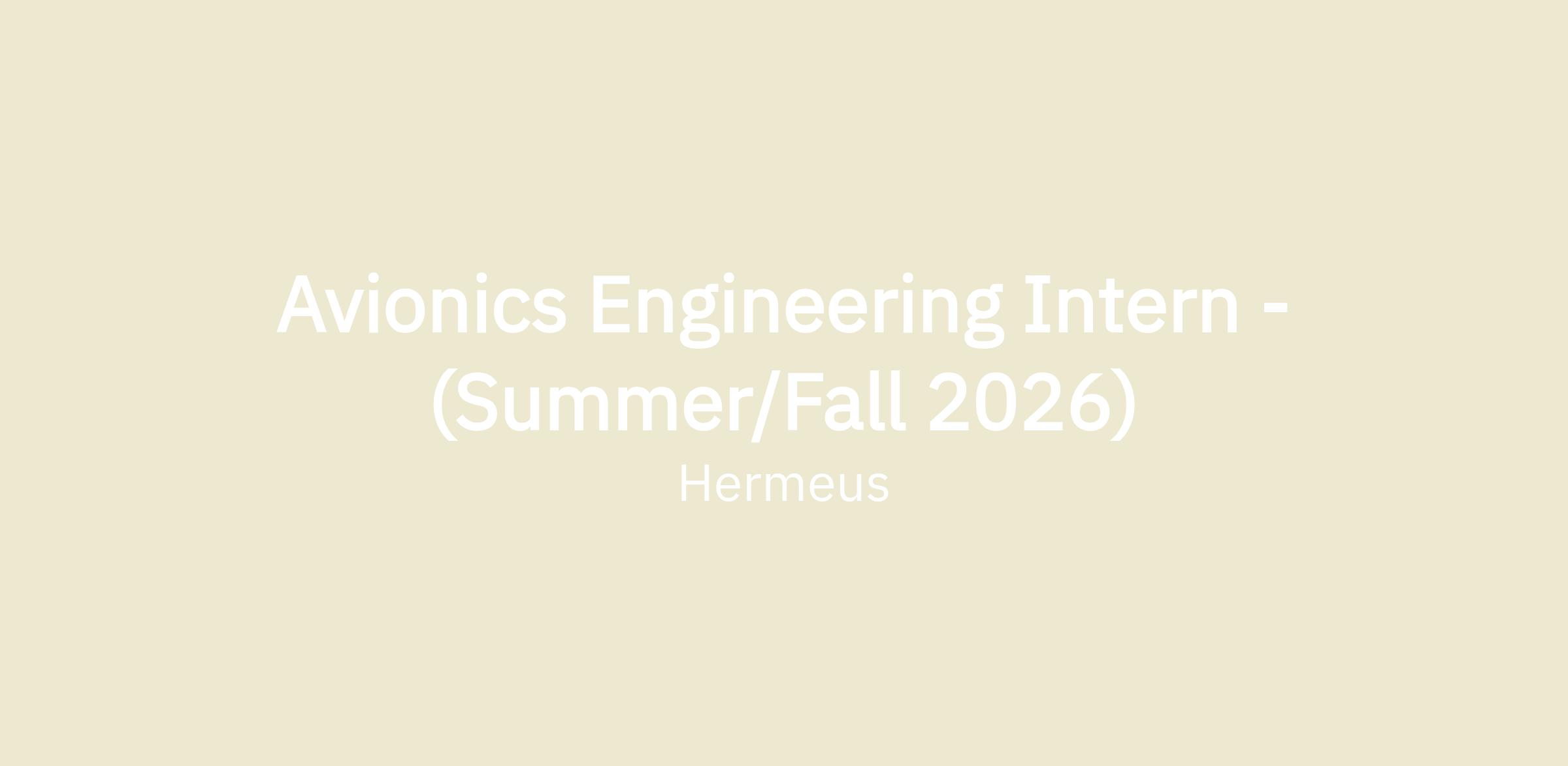 Avionics Engineering Intern - (Summer/Fall 2026)