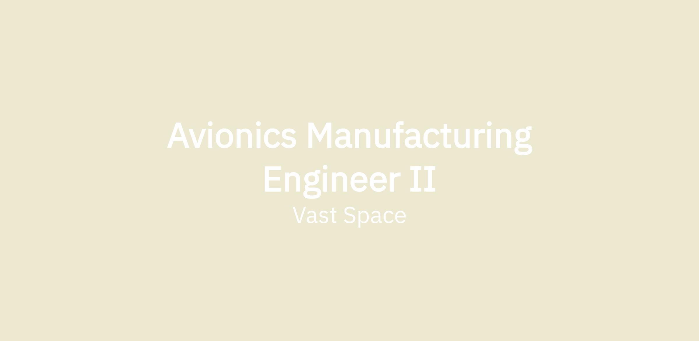 Vast is looking for an Avionics Manufacturing Engineer II, reporting to the Senior Avionics Manufacturing Engineer, to support the development of a variety of products and systems that will be required for artificial-gravity human-rated space stations.
