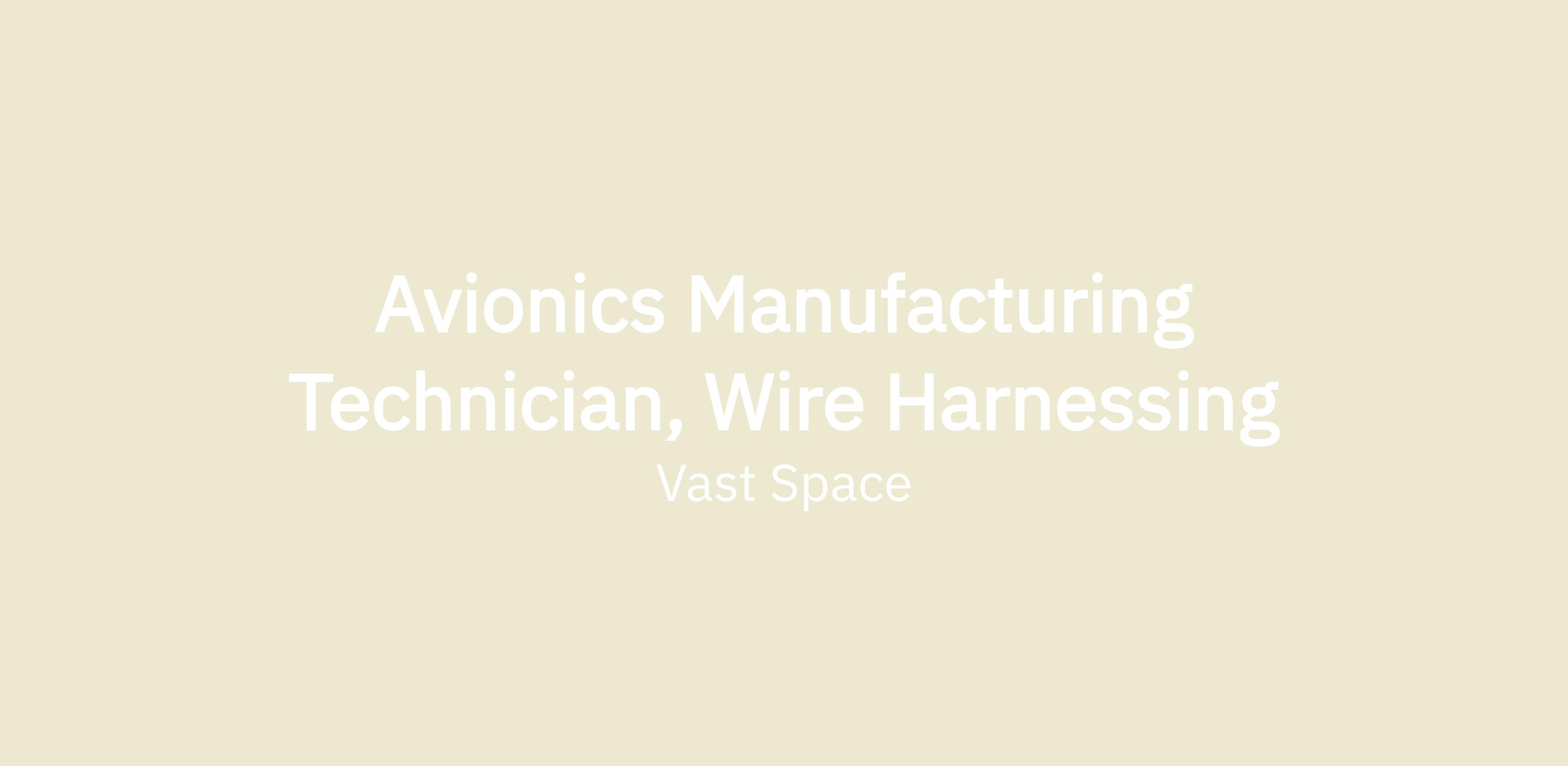 Vast is looking for an Avionics Manufacturing Technician, Wire Harnessing reporting to the Supervisor of Avionics Manufacturing, to support the development of the systems that will be required for the design and build of artificial-gravity human-rated space stations. You will work closely with our engineering teams to execute highly technical electrical builds. This is a second shift role.