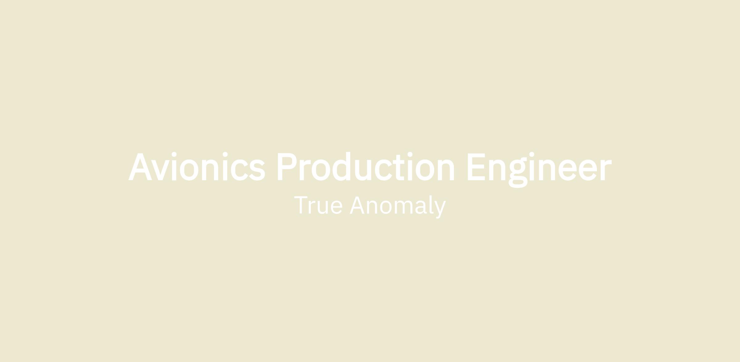 We are revolutionizing spacecraft systems and are searching for candidates passionate about hands-on engineering and advancing new technologies in space. As an Avionics Production Engineer you will have the opportunity to develop, implement, and optimize the production processes for avionics, electrical, and software-loaded hardware across multiple vehicle types at True Anomaly. You will directly coordinate with engineers, technicians, and others to create optimized designs and bring them into reality to fly and operate in spacer.