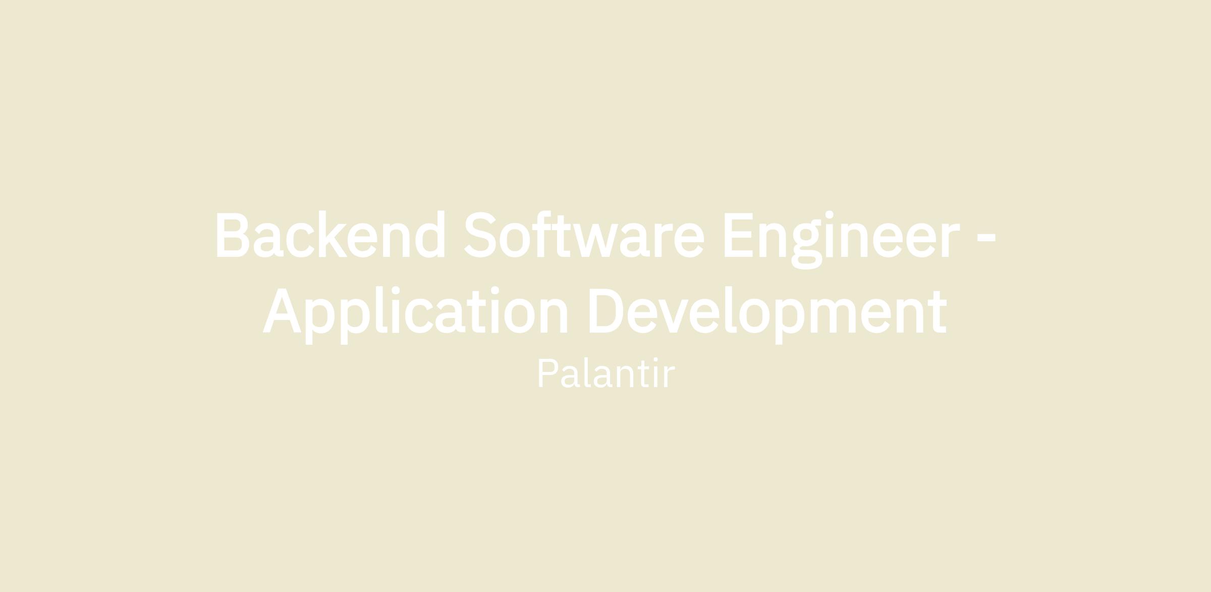 Backend Software Engineer - Application Development