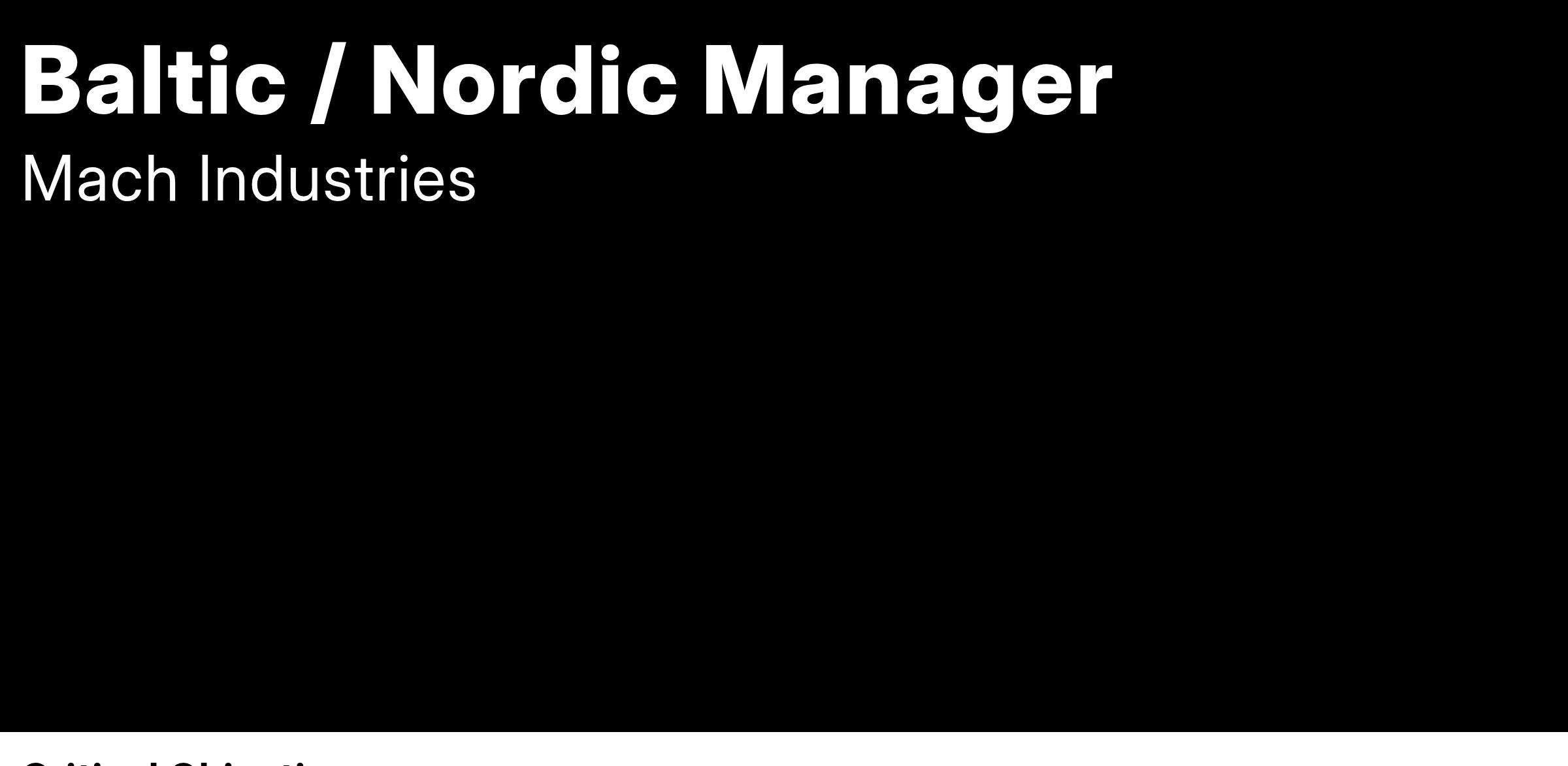 This role requires a dynamic and entrepreneurial leader with a deep understanding of the Baltic and Nordic markets, capable of driving strategic growth and building the company’s presence in this critical region.