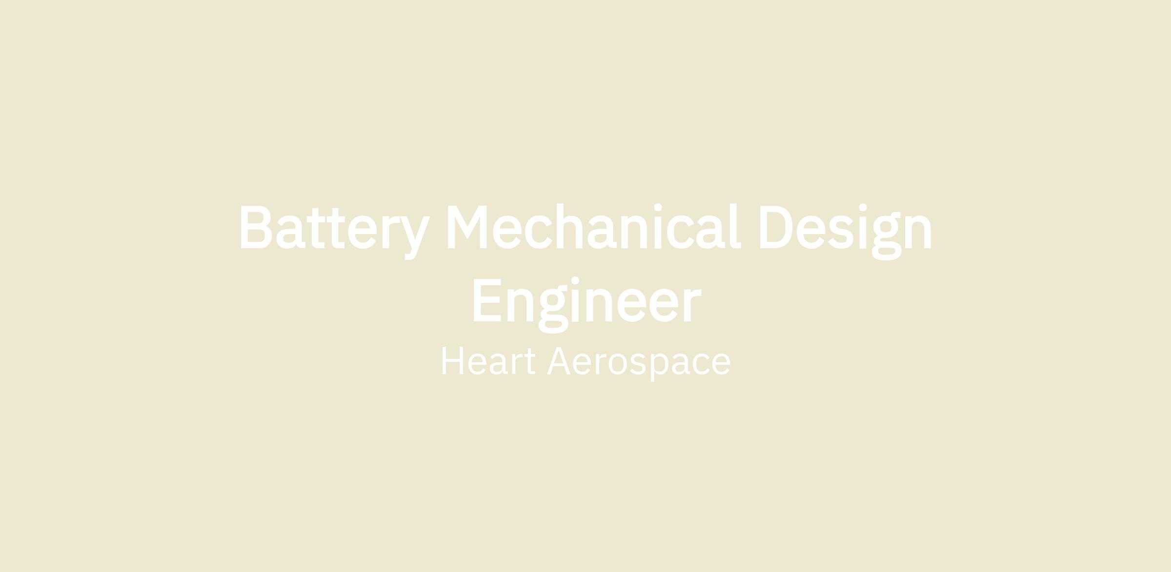 Heart Aerospace is seeking a highly motivated and experienced Battery Design Engineer to join our growing and dynamic team. In this role, you will be a key contributor to the design, development, testing, and optimization of advanced battery systems specifically designed for the demanding requirements of electric aerospace applications. You will leverage your deep understanding of design methodologies and approaches to drive innovation and ensure the highest levels of performance, safety and reliability. You will translate system-level requirements into robust, certifiable mechanical designs, playing a critical role in electrifying the future of flight.