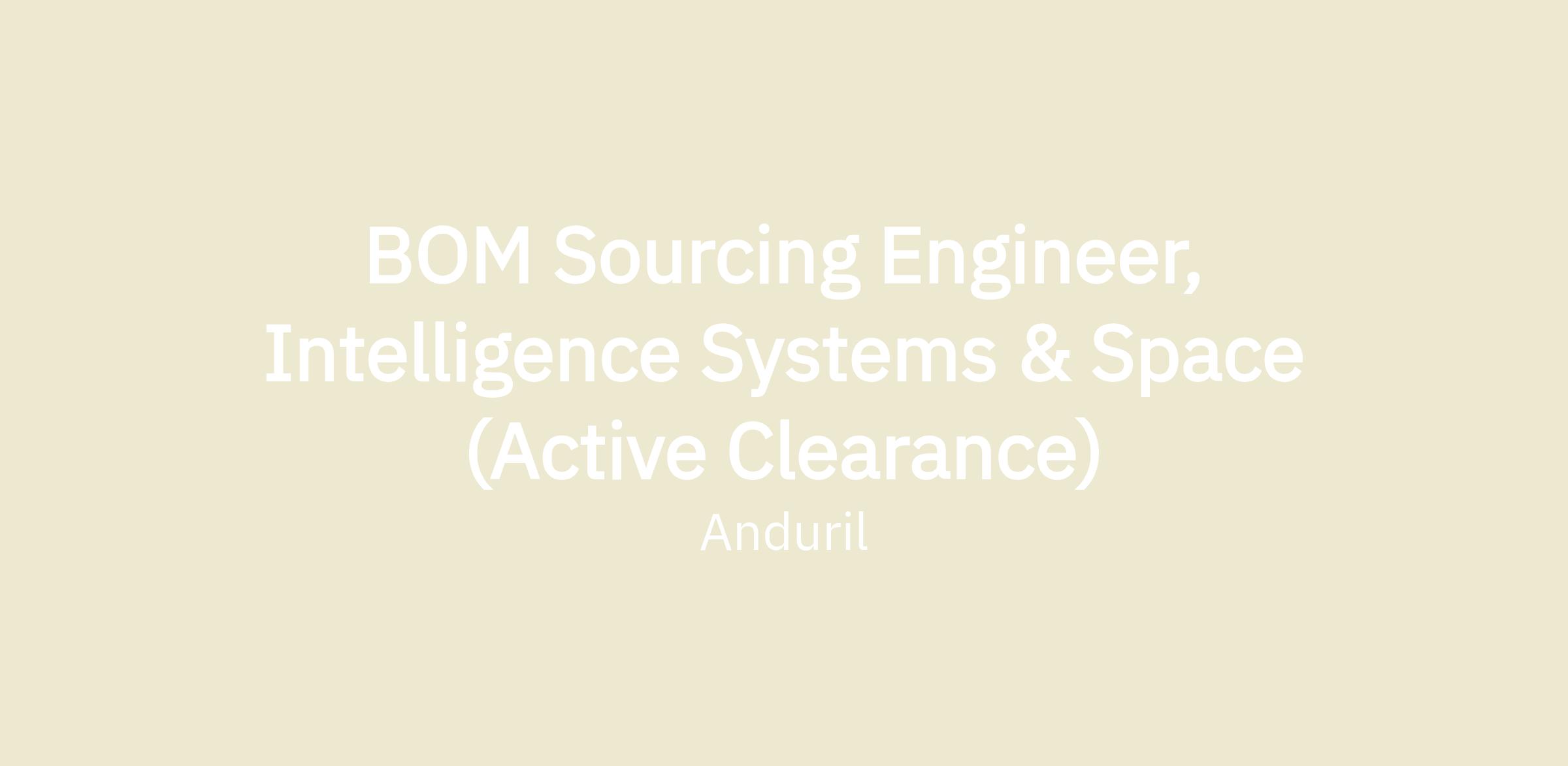 The BOM Sourcing Engineer (internally known at Anduril as Product Sourcing Engineer), for Intelligence Systems & Space programs, drives the strategic supply network development and cost management of Anduril’s product hardware across their lifecycles, by collaborating with suppliers and cross-functionally, including folks in engineering, quality, and manufacturing. You will be the end to end owner of supply chain for the Anduril Intelligence & Space business line, responsible for engineering support, vendor onboarding & development, as well sourcing, pricing, and negotiating for the total Bill of Material (BOM)