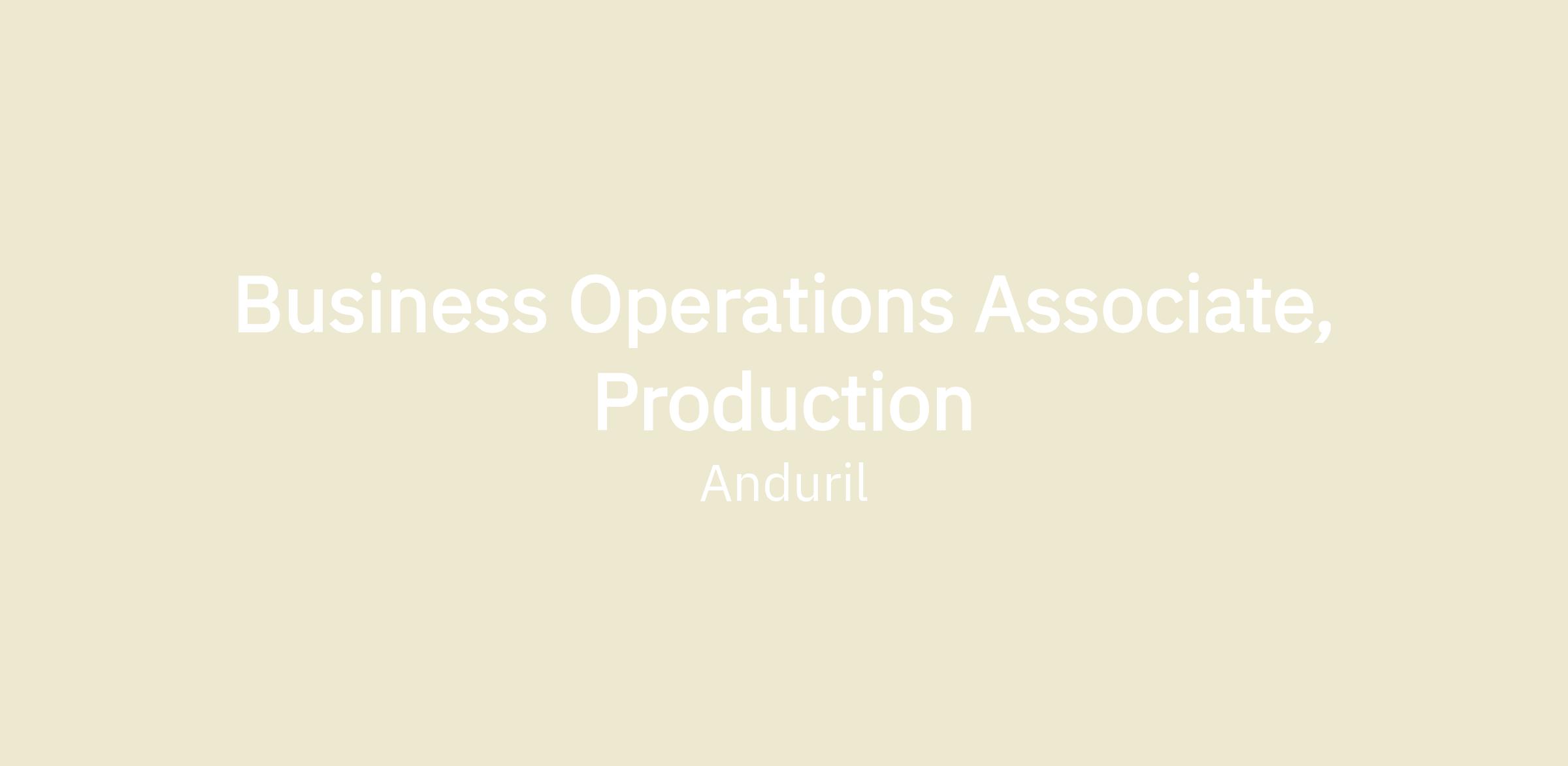 As a Business Operations Associate in our Production organization, you will be joining the new home for Special Projects in one of Anduril’s largest, fastest-growing organizations. Production at Anduril is responsible for the end to end processes of procuring, manufacturing, and delivering hardware to our customers. The Production BizOps team is dedicated to staffing heavy-hitters against the highest-priority problems in the organization to help deliver hardware On-time, with Quality, at Cost.