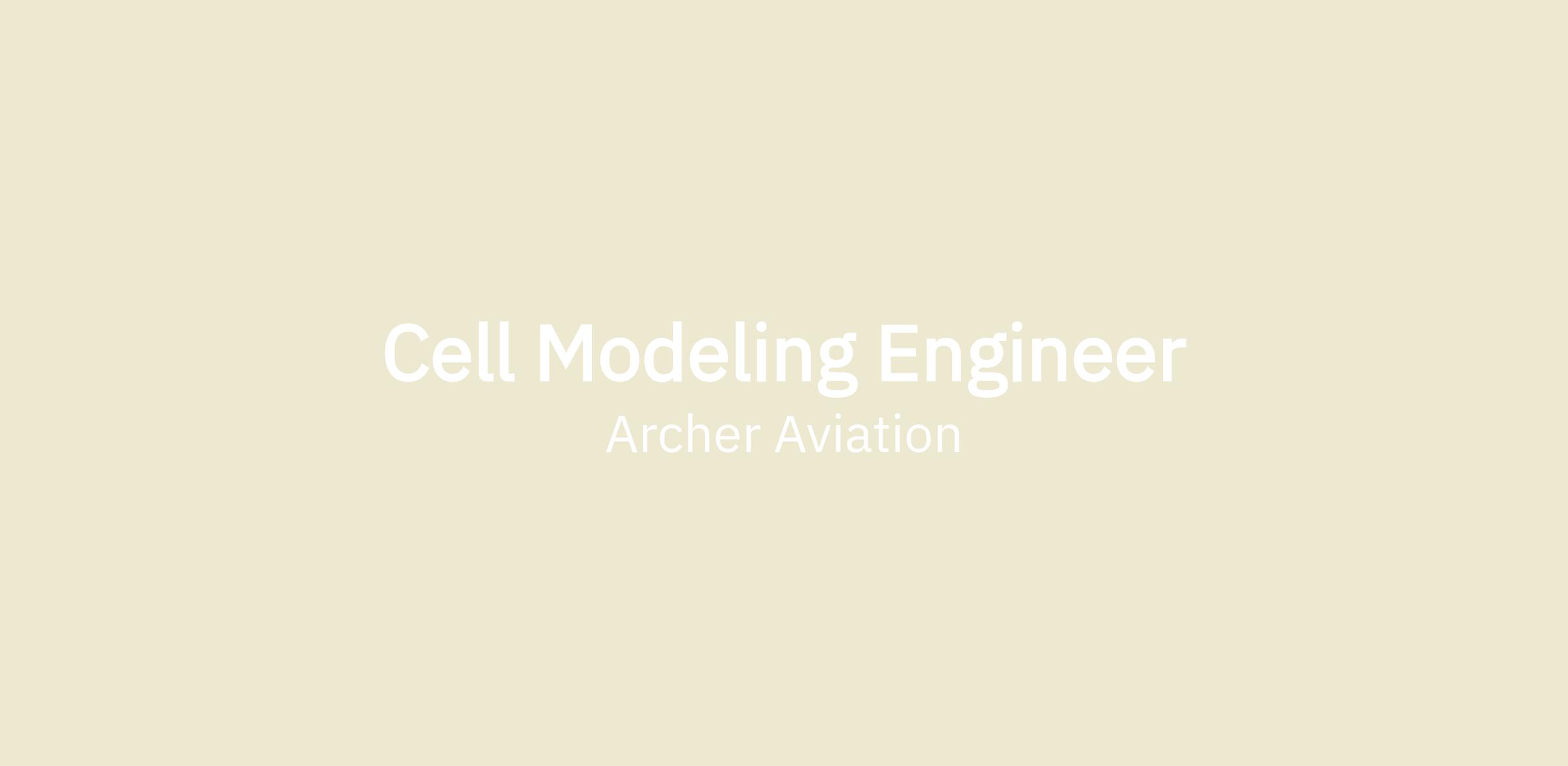 Archer is seeking a motivated cell modeling engineer so that we can develop some of the most accurate cell models in the industry. As a member of the Battery Cell Engineering team, you will be responsible for the development, validation, and maintenance of models that describe the electrical behavior of cells over their operational life.