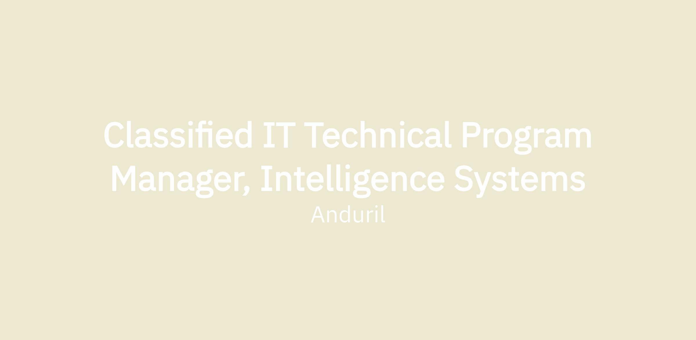 Anduril is seeking a Technical Program Manager to directly support our most sensitive programs. You will be a part of the team building and maintaining the critical classified infrastructure. You will have the opportunity to work with and learn from some of the world’s best engineers and cybersecurity professionals as you help to implement cutting edge systems. You will work directly with customers and systems deployed across the globe in support of national security missions all while gaining invaluable experience navigating complex cybersecurity regulation frameworks.