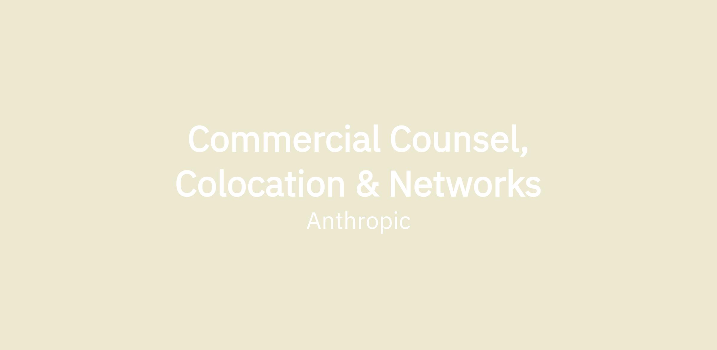 As a Commercial Counsel for Colo and Networks at Anthropic, you'll lead legal execution for the distributed component of Anthropic's compute strategy (colocation agreements, network connectivity / infrastructure, and datacenter services). You'll work closely with Anthropic’s compute transaction managers to secure capacity through third-party facilities and emerging providers, complementing our hyperscaler relationships and direct datacenter development workstreams.