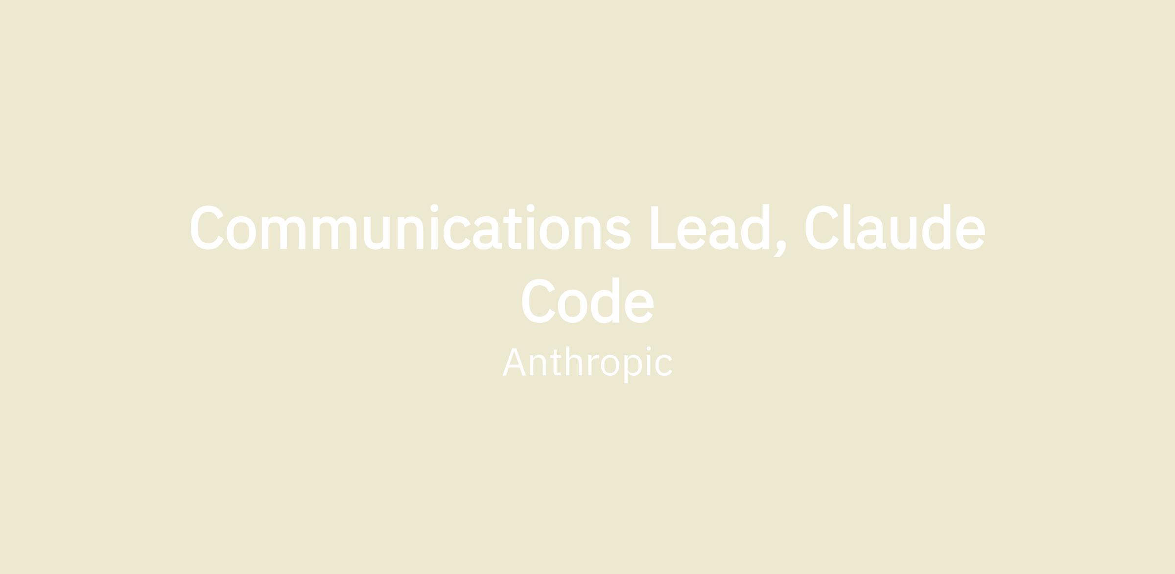 Anthropic is looking for a Communications Lead to own comms for Claude Code. You'll sit on the Product Communications team, working day-to-day with the Claude Code product team, developer relations, and marketing.