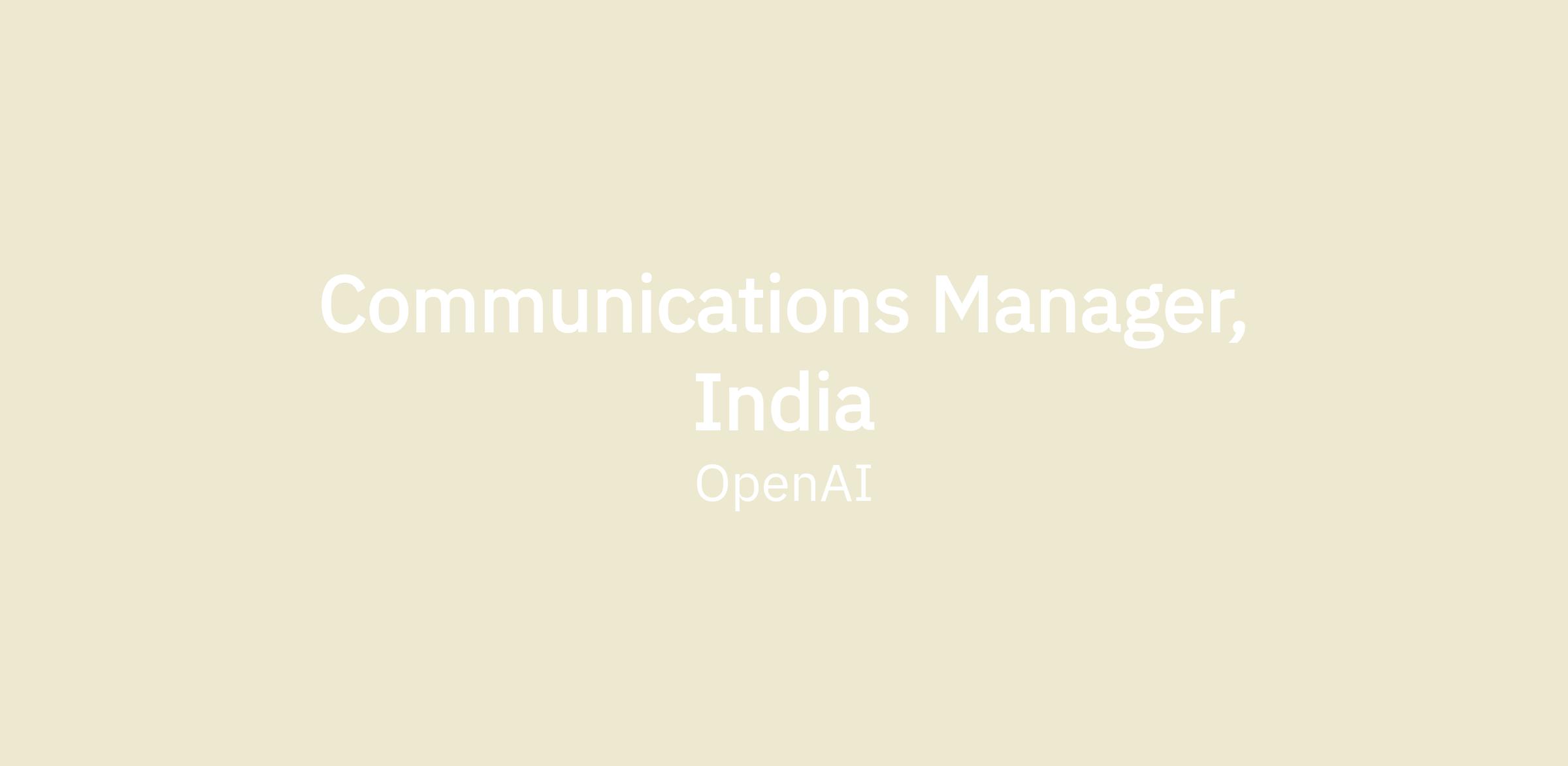 We’re looking for an experienced Communications Manager to help shape and execute OpenAI’s communications in India, with a primary focus on consumer and product centric narratives - how people, creators, students, and communities experience and benefit from OpenAI’s tools. Working as part of a small team, this role will also support corporate communications and issues management as and when needed.