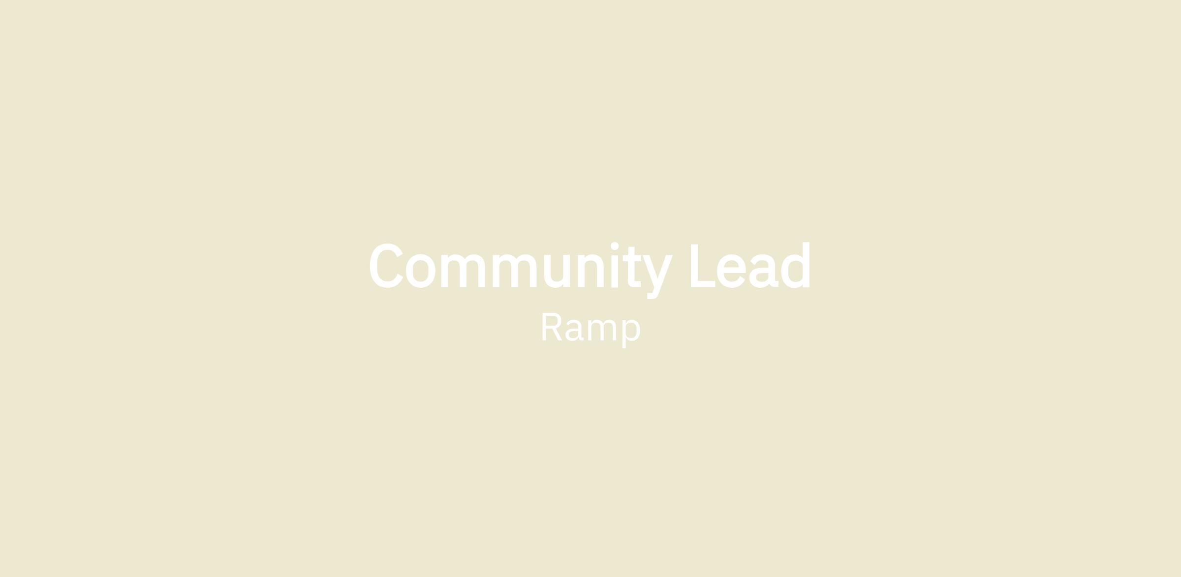 Ramp is seeking someone to build and run our Community program.