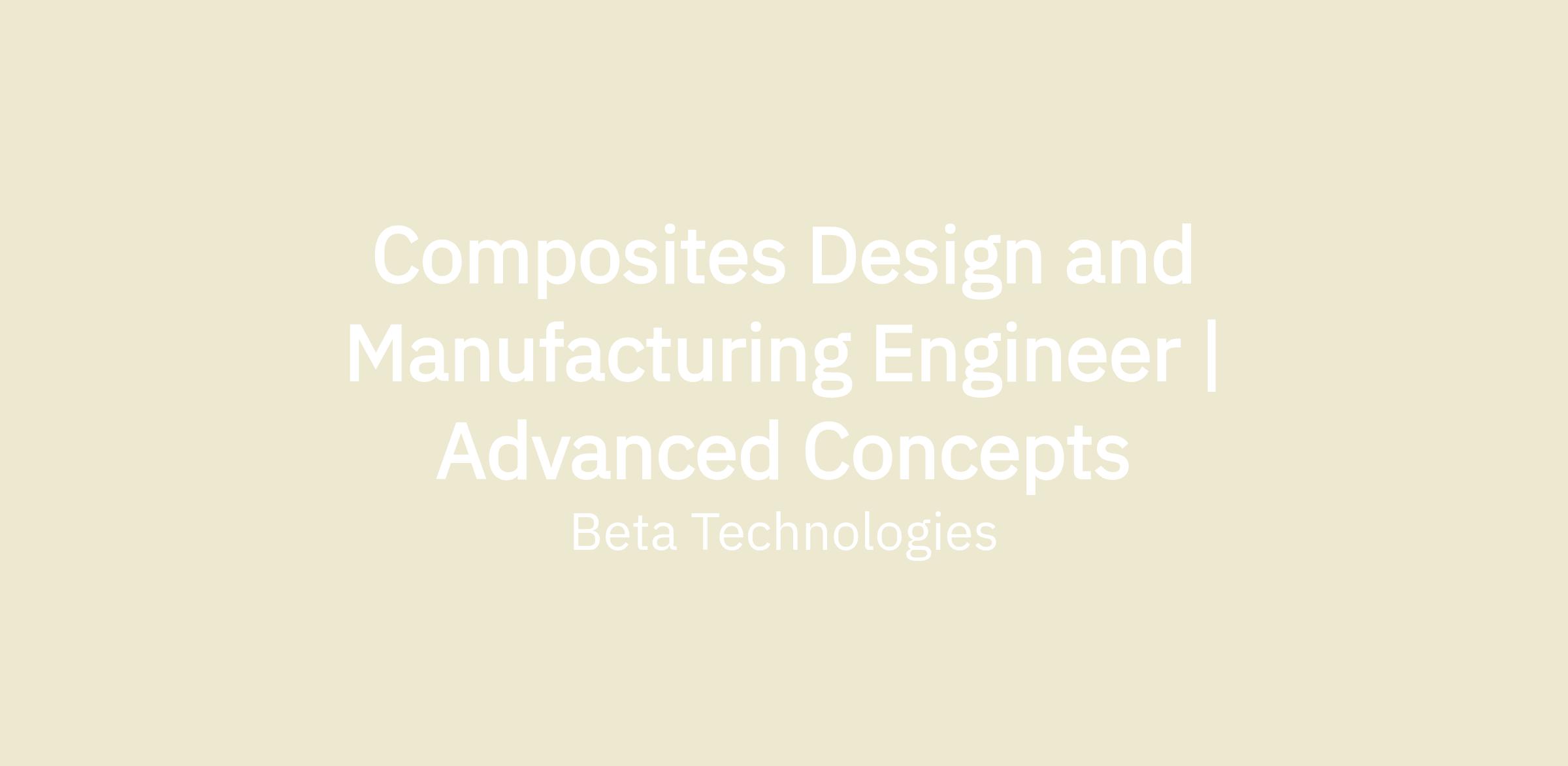 The Composites and Manufacturing Engineer position is for a multi-faceted composites designer on the Advanced Concepts team at Beta. This person would work across teams to design end-to-end metallic and composite components for next-gen aircraft and peripherals. This person would also work to develop tooling, both internally and with external vendors, and support layup of first article components to inform production.