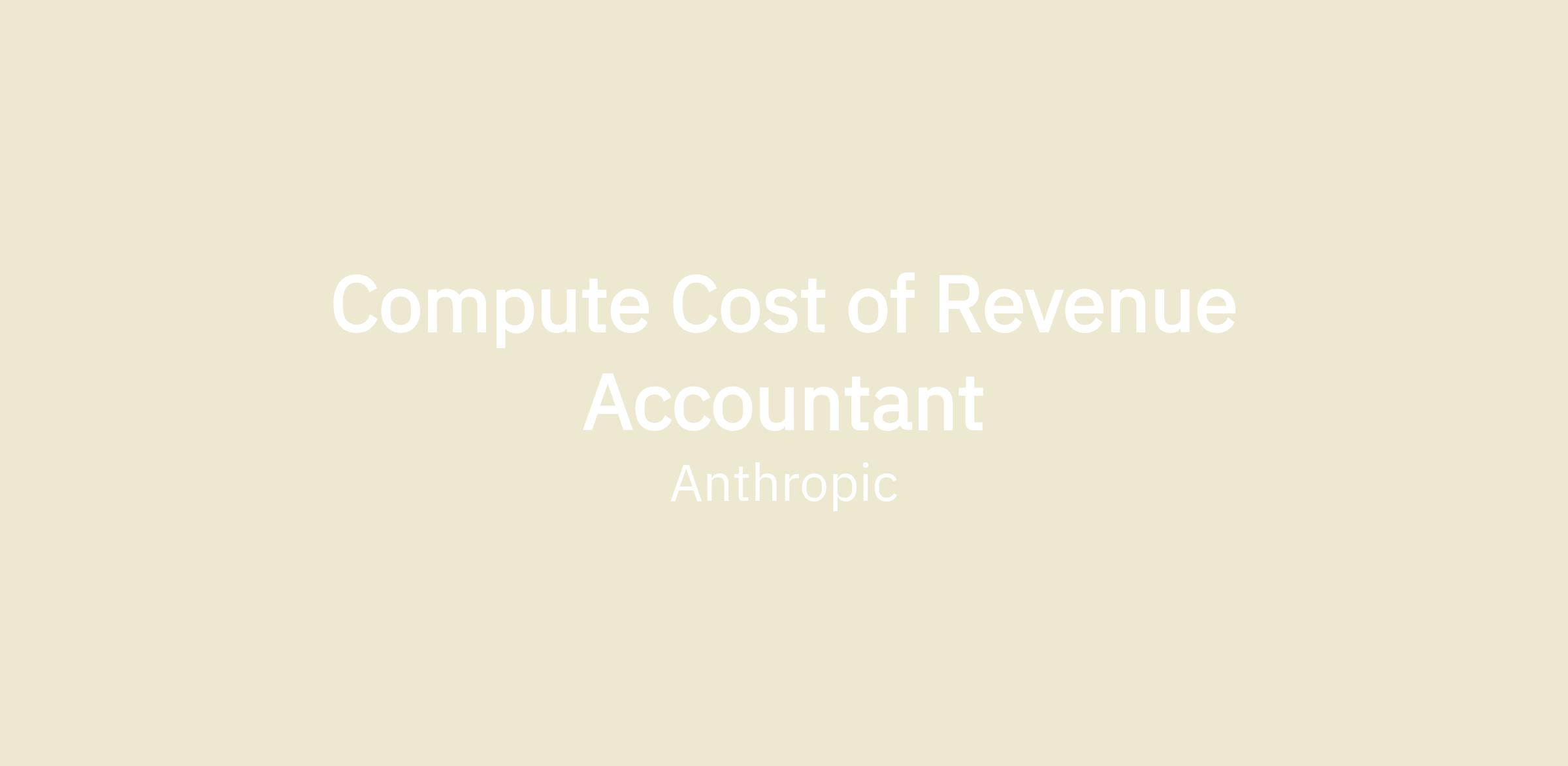 We are seeking a Compute Cost of Revenue Accountant to join our Accounting team at Anthropic. In this role, you will own the financial accounting, allocation, and reporting for compute-related Cost of Revenue (COR). As Anthropic scales its AI infrastructure, accurate COR accounting and cost allocation are critical to understanding the economics of our products and informing strategic investment decisions. You will develop and refine allocation methodologies, implement and maintain accounting policies for overhead and direct cost attribution, and ensure proper COR classification across our expanding product suite. Compute is the largest expense category at Anthropic and is critical to understanding the gross margin of our business. This is an opportunity to build foundational accounting processes at a company operating at the frontier of AI.