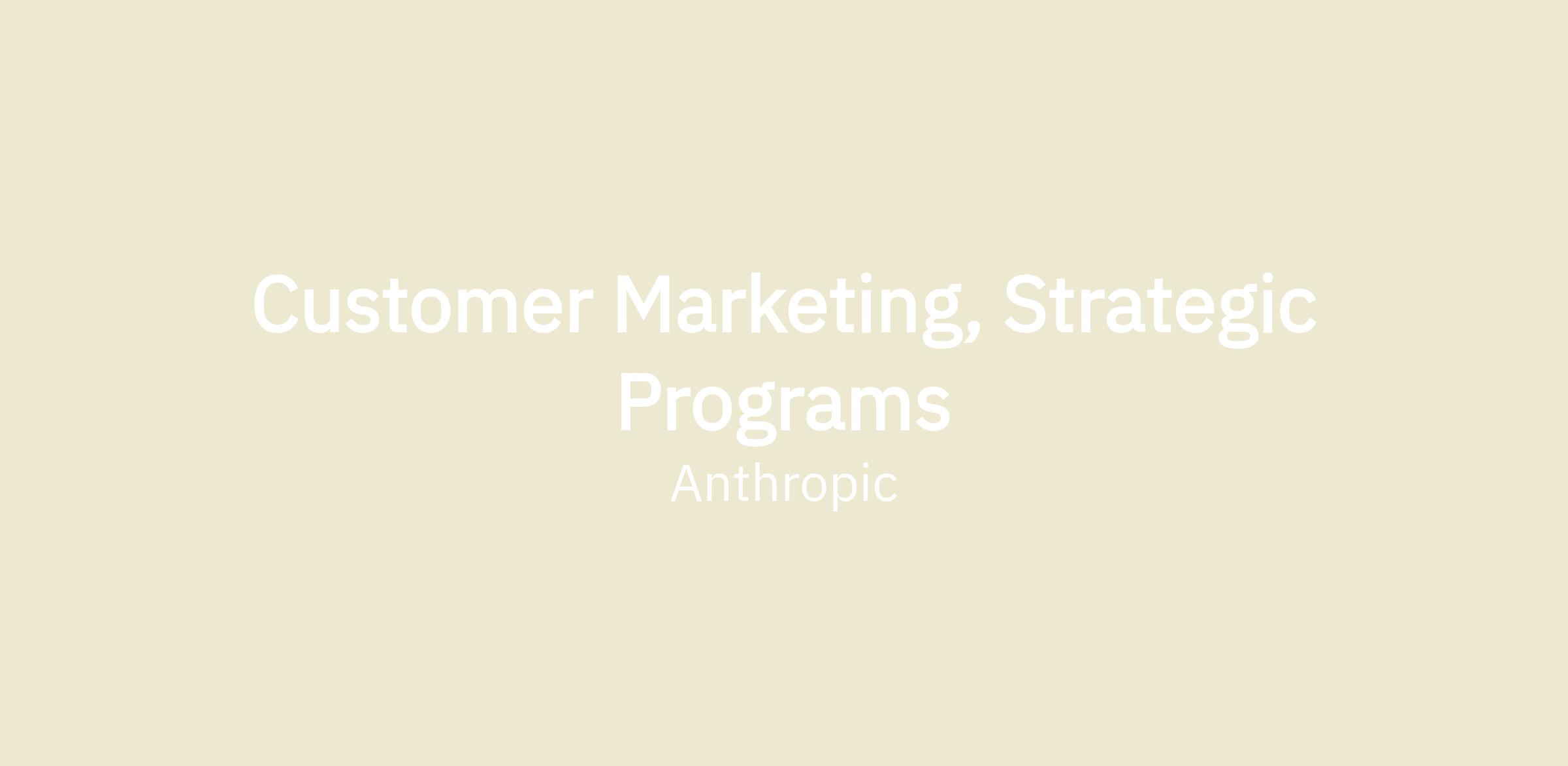 Anthropic is seeking a Customer Marketing, Strategic Program Manager to build and run the programs that put customers at the center of how we launch products and tell our story. You'll own a portfolio spanning early access for model launches, customer-facing events, analyst relations support, and voice-of-the-customer work that feeds directly back into the product roadmap. The through-line across all of it: get the right customers into the right moments—launches, stages, analyst briefings, campaigns—to ensure everything Anthropic says and does is rooted in customer proof.