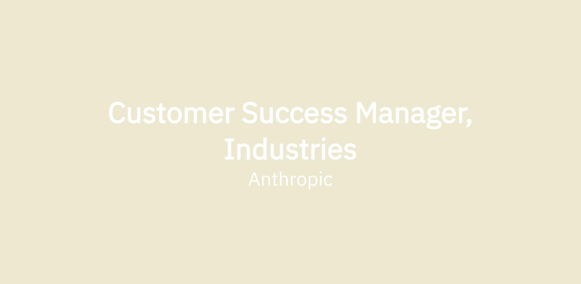 Join Anthropic's Customer Success team in a high-impact role driving AI adoption across our Industry segment. As an Enterprise Customer Success Manager for Industries, you'll be the strategic partner and a trusted advisor to our most complex customers with a portfolio spanning Financial Services, Systems Integrators, Semiconductor, Manufacturing and Retail organizations—helping them harness the full potential of all our Claude capabilities - API, Claude for Enterprise, and Claude Code.