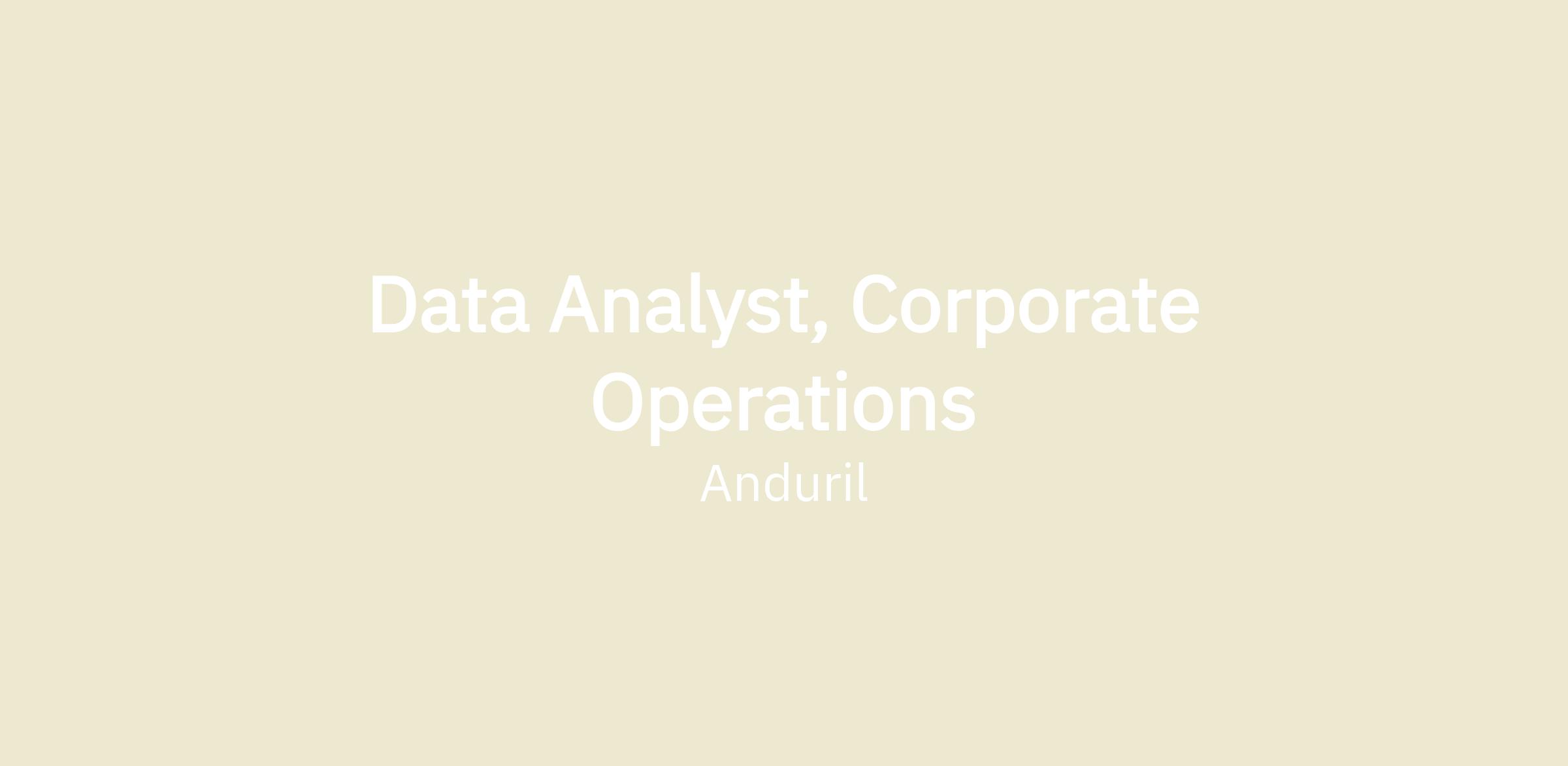 We’re hiring a Data Analyst, Corporate Operations to support and scale Anduril’s corporate planning and operating cadence through high-quality analytics, visualization, and quantitative analysis. In this role, you will translate planning and operational questions into metrics, dashboards, and analyses that inform decision-making. You will be responsible not only for producing rigorous analytical work, but also for ensuring the analytics products you build are reliable, well understood, and continuously improving based on how they are used. This role is ideal for an early-career analyst who is technically strong, thoughtful about system design, and motivated to improve how data is used across the organization.