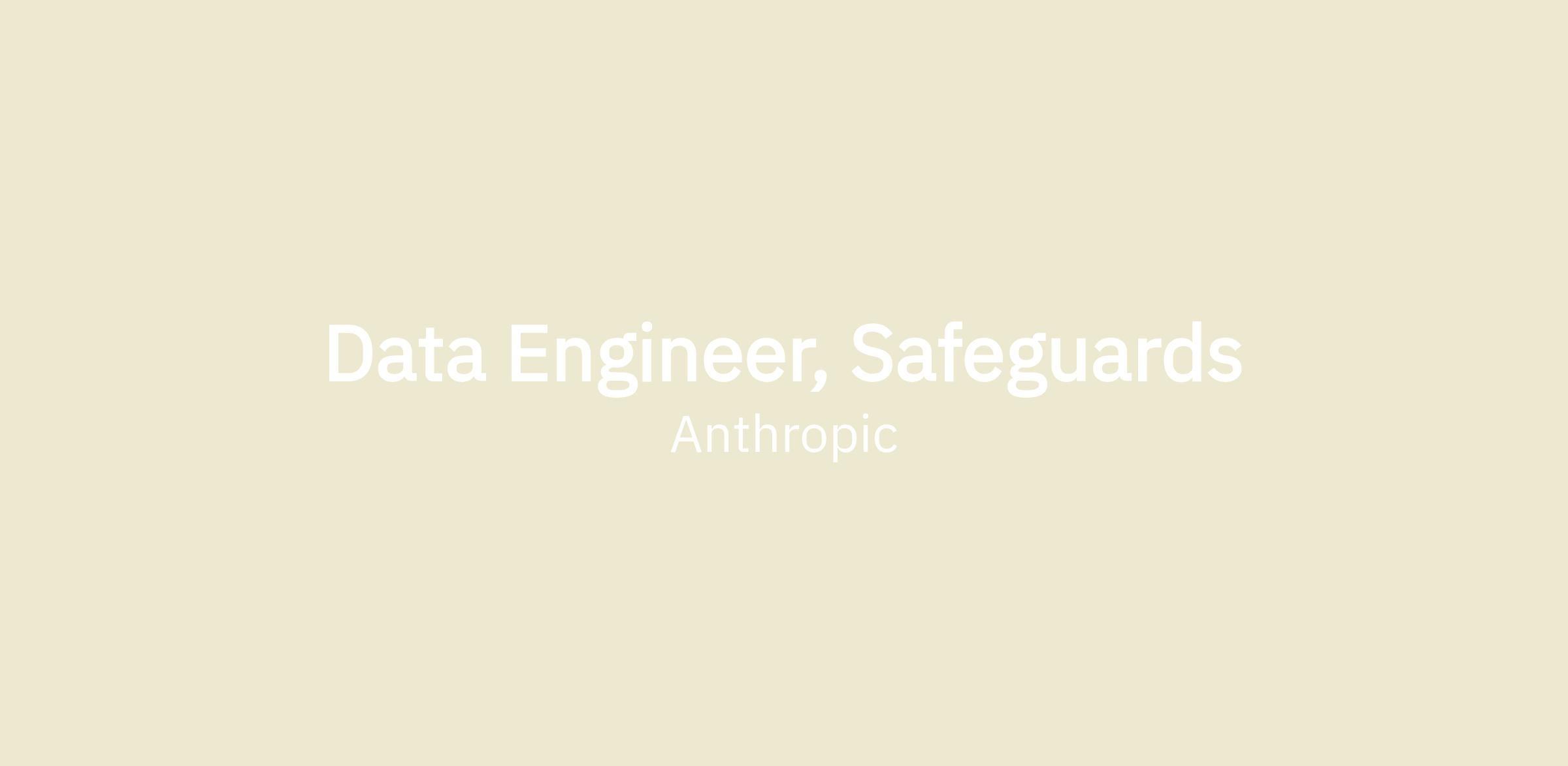 Anthropic is looking for a Data Engineer to join the Safeguards team and build the data foundations that keep our AI systems safe. The Safeguards team works to monitor models, prevent misuse, and ensure user well-being — and doing that well requires robust, reliable data infrastructure. In this role, you'll design and build the data pipelines, warehousing solutions, and analytical tooling that power our safety and trust efforts at scale.