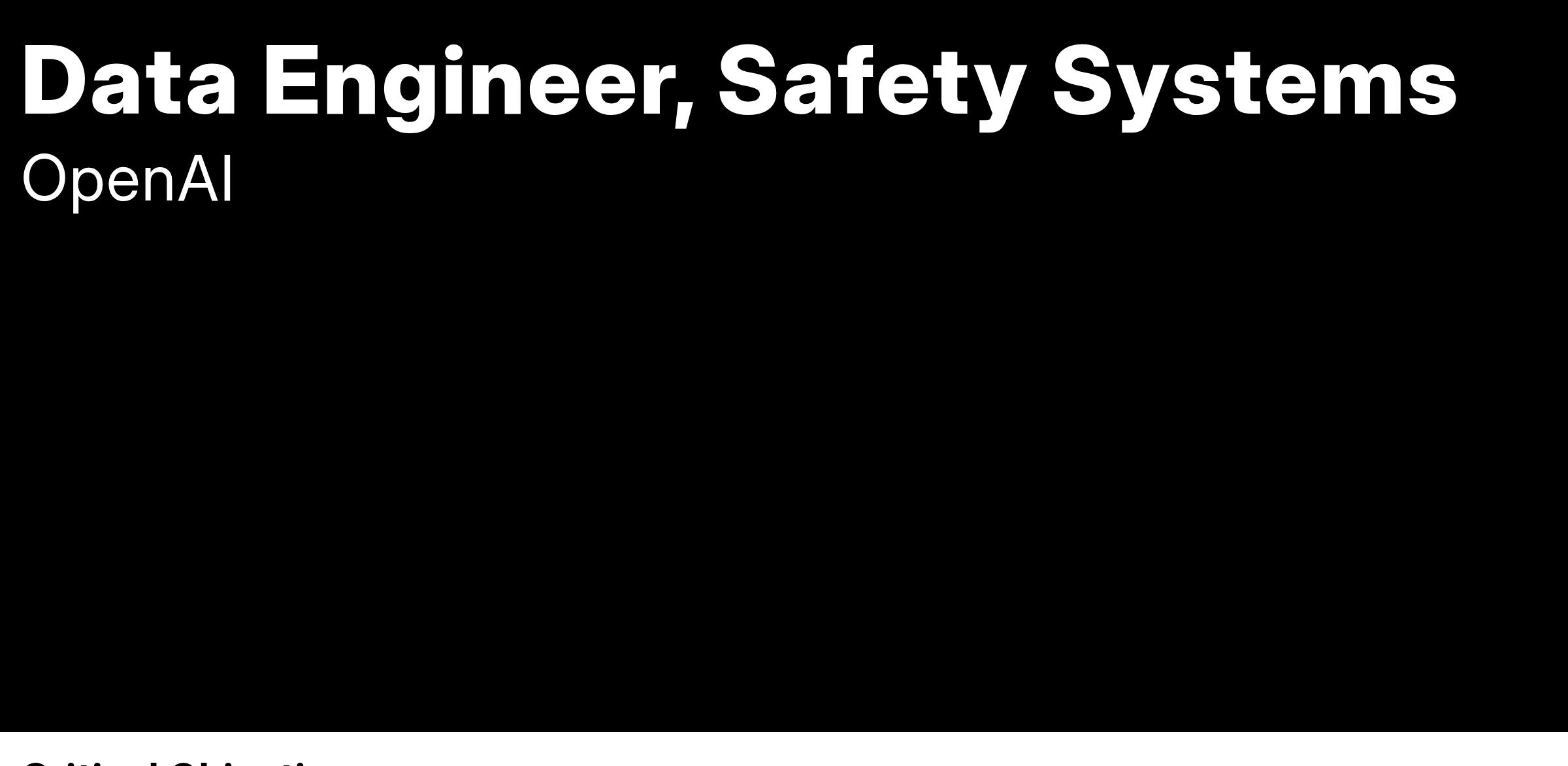 We're looking for our first Data Engineer to help drive our product analytics and growth. If you love working with data, and creating solutions that drive critical business decisions and product development, you might be a great fit. ChatGPT is one of the fastest growing products in Silicon Valley history, and we hope to further accelerate our growth with data-derived insights.