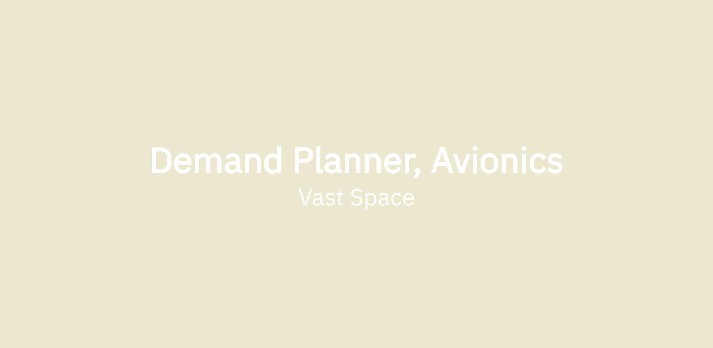 Vast is looking for a Demand Planner, reporting to the Manager of Demand Planning, to support the development of the systems that will be required for the design and build of artificial-gravity human-rated space stations.