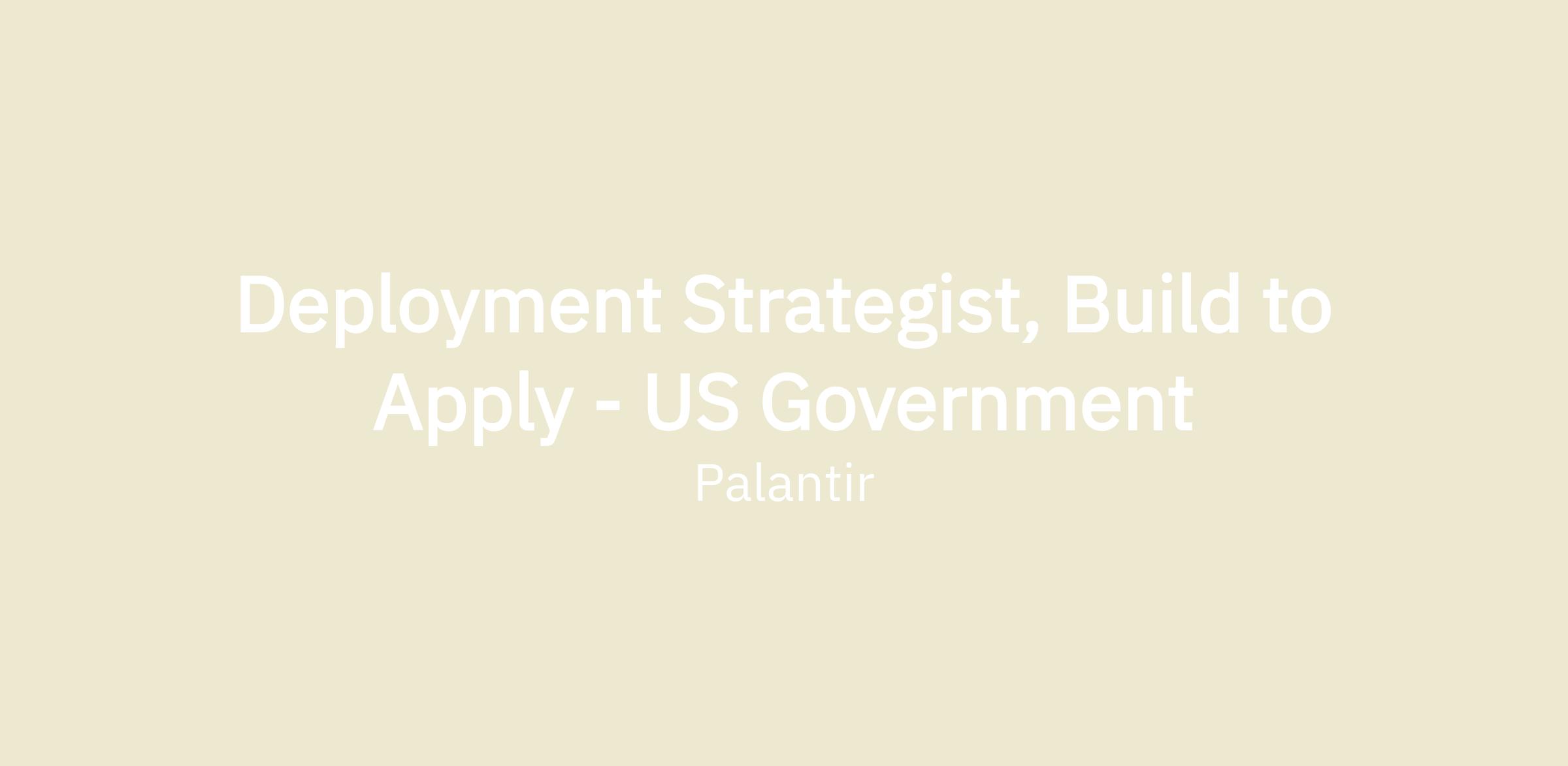 Deployment Strategists are self-starters who immerse themselves in our customers' most intricate workflows, partner with customer teams and explore the data, and dive into the product landscape to enable us to scale. A select number of Deployments Strategists may also be deployed to Palantir internal teams and projects. In this role, the problems you'll tackle will require a curious and analytical mindset, a sharp intuition for product, and a strong degree of user empathy to ultimately empower our customers to make better decisions.