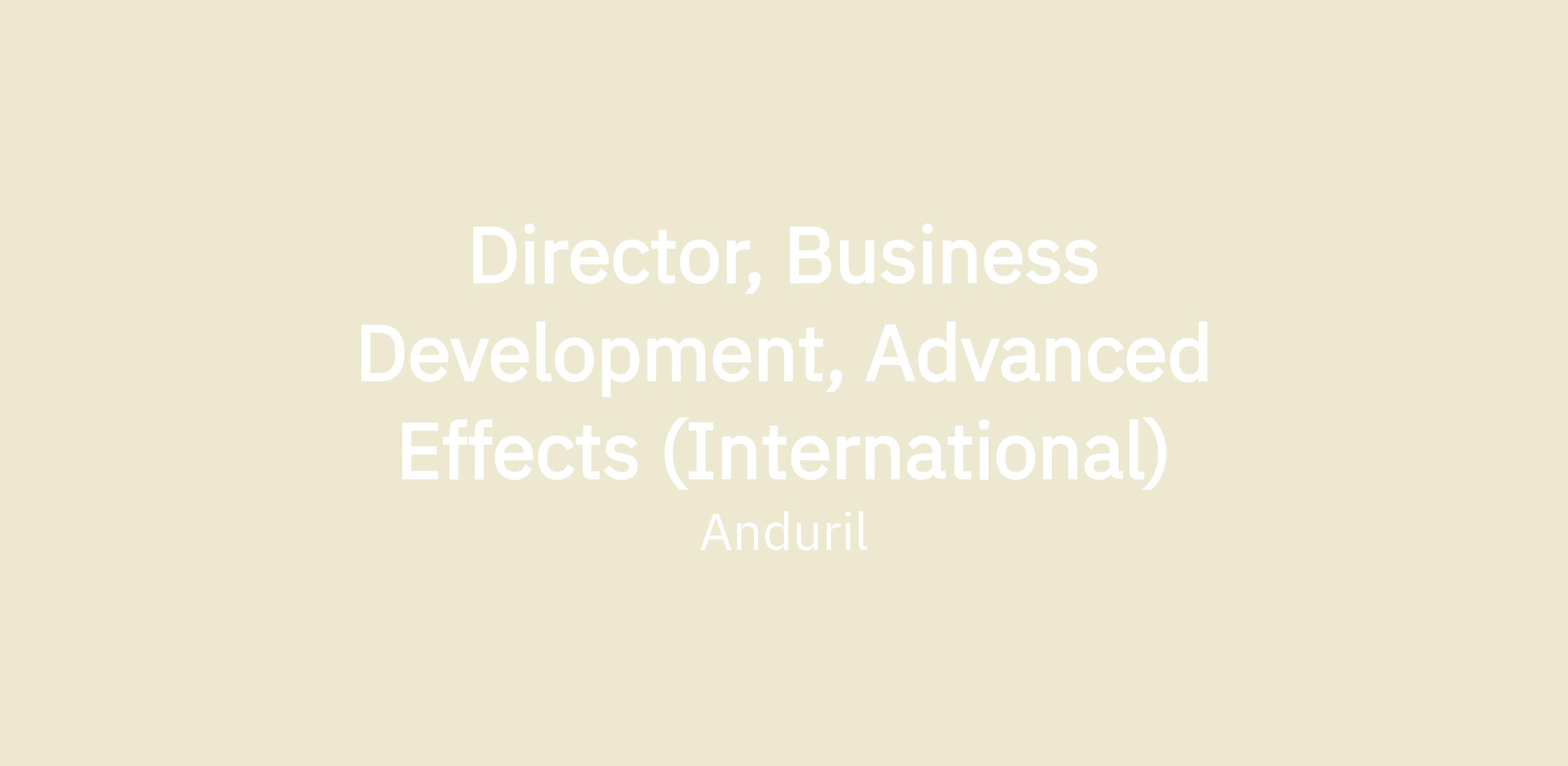 Director, Business Development, Advanced Effects (International)