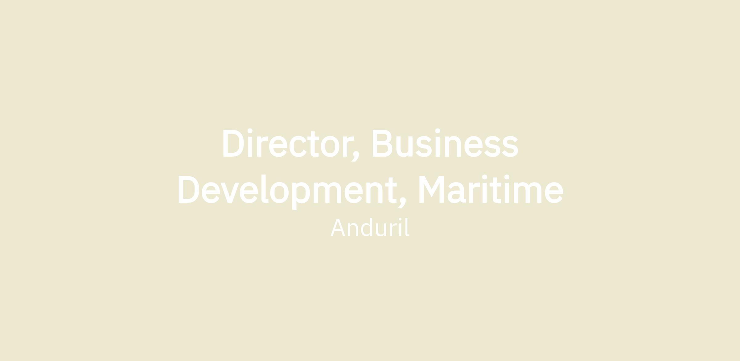 As our team continues to quickly grow, we are looking for motivated candidates that are inspired to work within an extremely energetic, creative, and innovative team that is passionate about new maritime industries. We work in a highly dynamic environment where collaboration and idea sharing are a way of life. We are seeking a Director, Business Development, Maritime to join Anduril, working in a cutting-edge start-up environment to advance the state-of-the-possible in a new greenfield maritime business line.