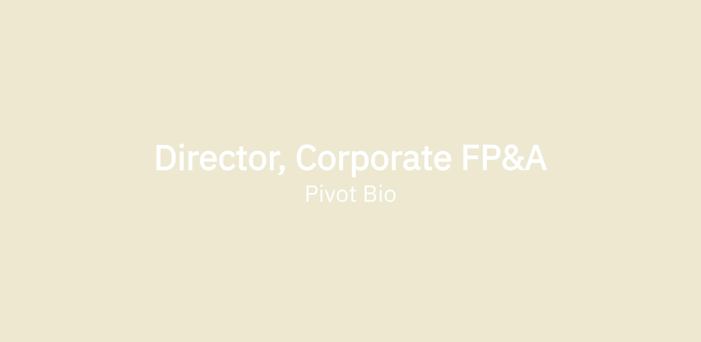 Pivot Bio is seeking a highly strategic and hands-on Director of Corporate FP&A to join our financial planning and analysis function. This role will own all aspects of the company’s financial planning, forecasting, and reporting insights, serving as a critical thought partner to executive leadership, the Board, and investors.