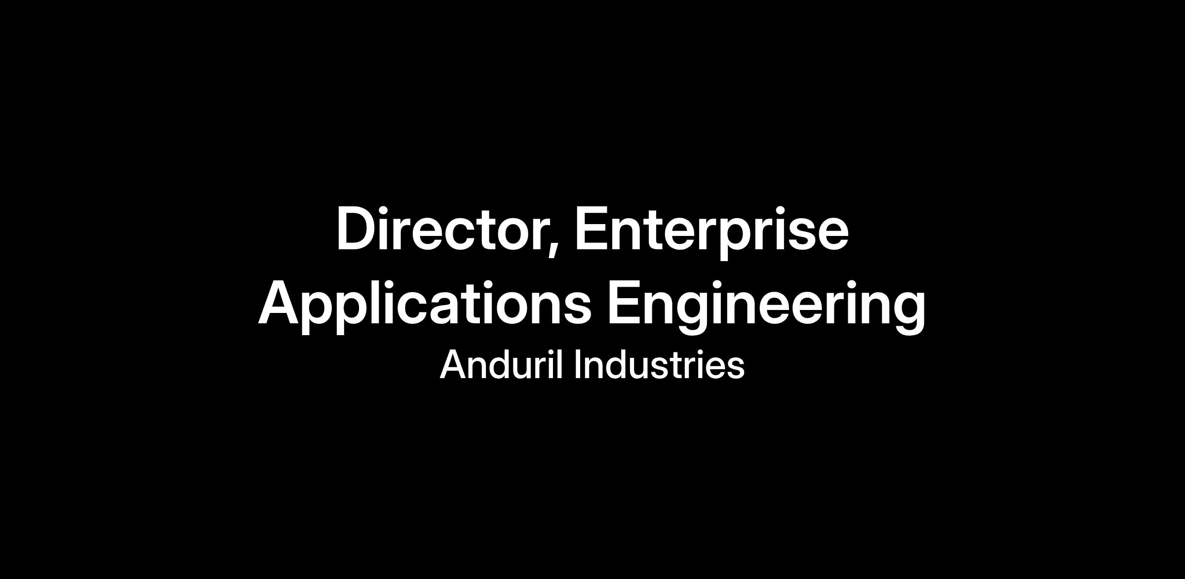 At Anduril Industries, a leading defense technology company, we are seeking an experienced and innovative Director of Enterprise Applications. As a critical member of our enterprise technical team, you will play a key role in shaping the Enterprise Application infrastructure across the organization, deploying cutting-edge technology to best support the teams building the next generation of defense tech for U.S. and allied militaries.