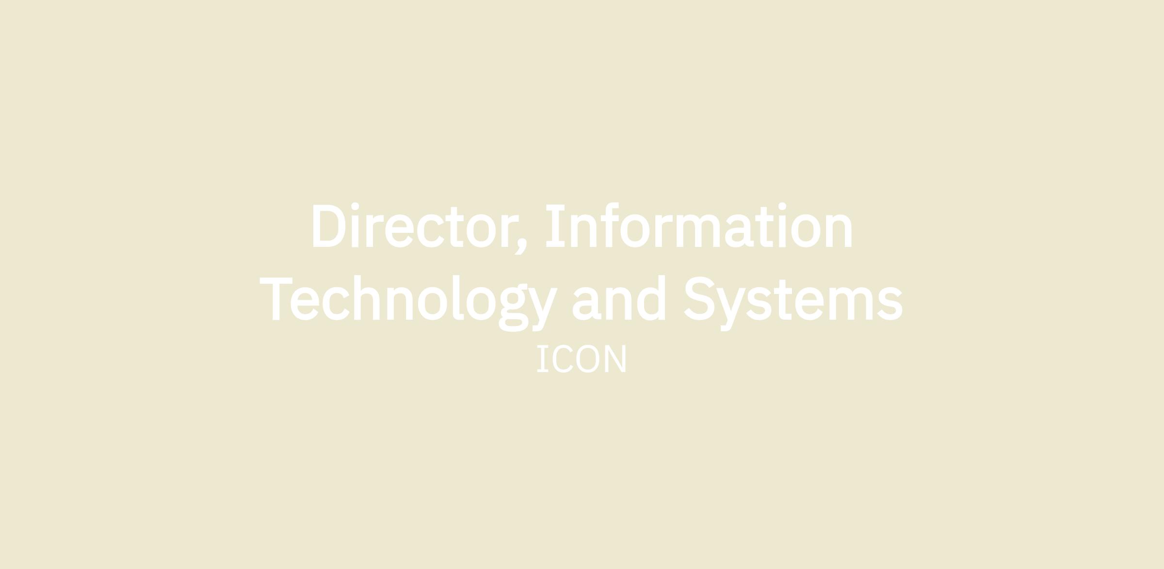 ICON is looking for a Director of Information Technology and Systems to build and own a unified technology strategy that drives critical business outcomes across a dynamic, multi-unit organization. As the Director of Information Technology & Systems, you will ensure the ICON tech stack drives business innovation, information security, and access to critical business data.