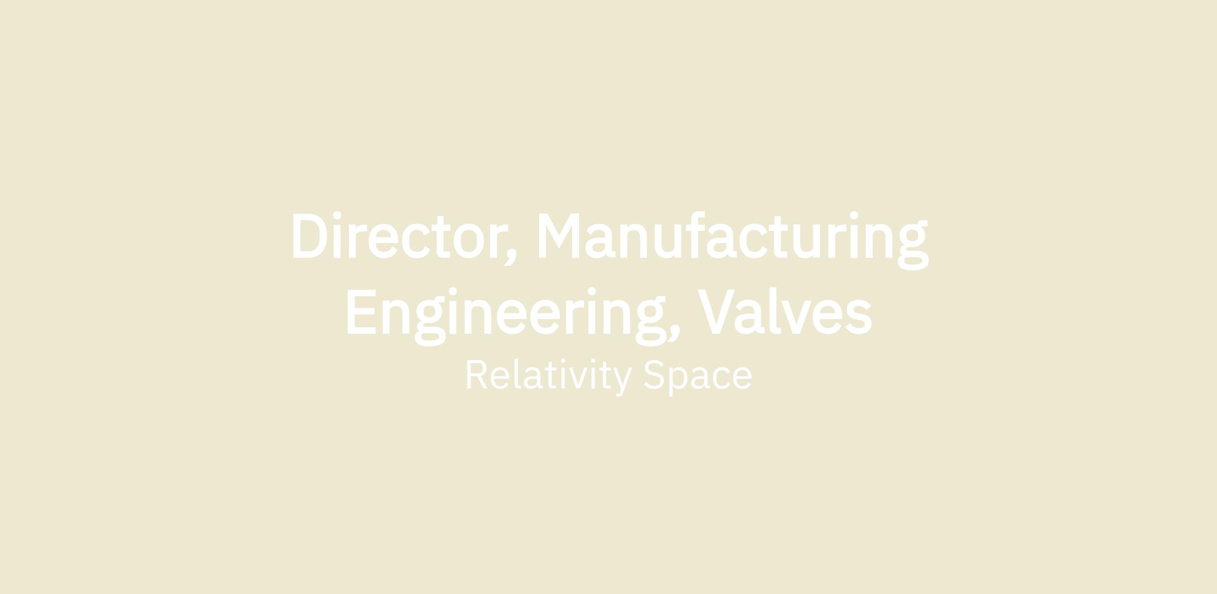 Director, Manufacturing Engineering, Valves