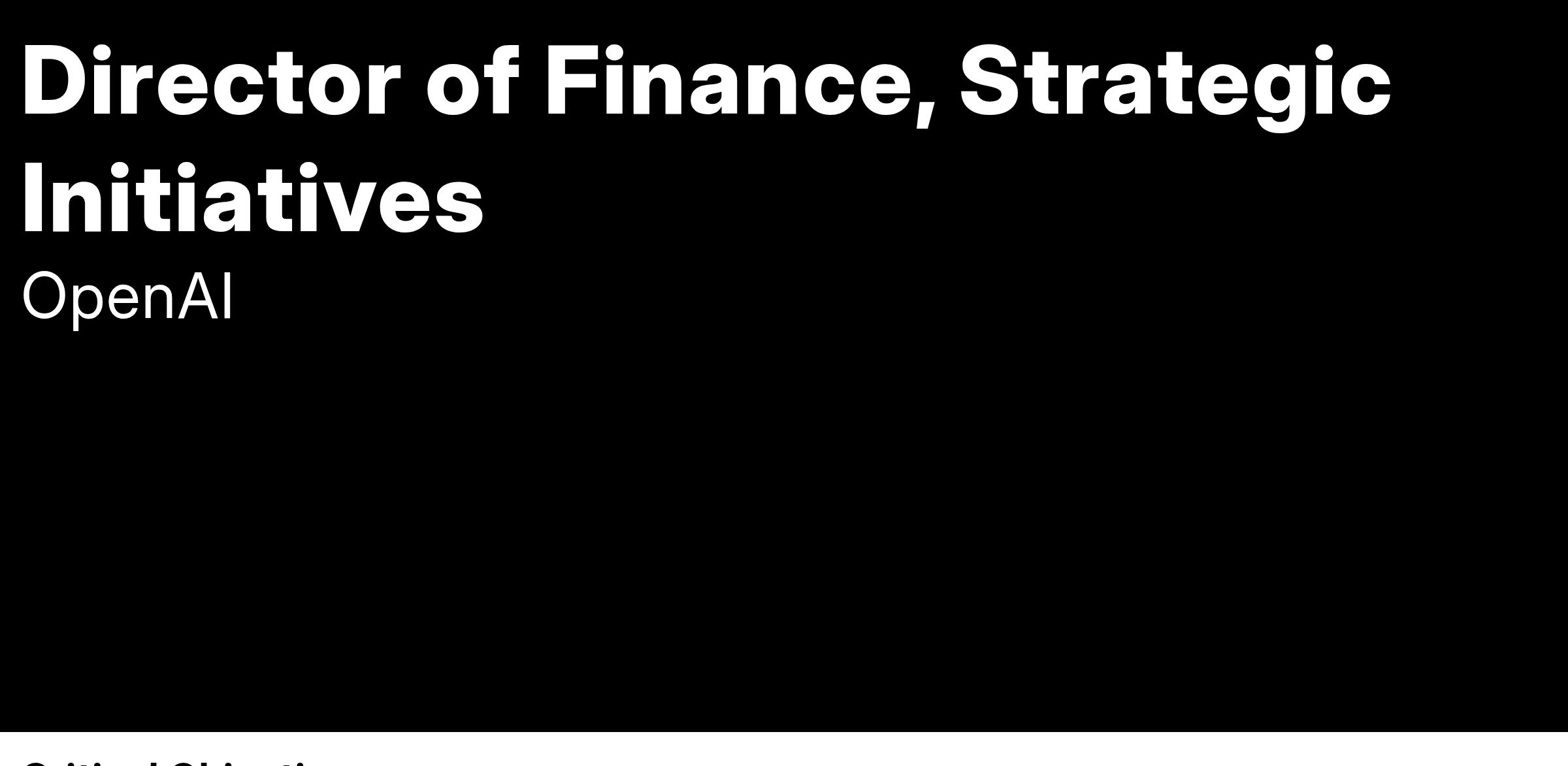 We’re looking for a Director of Finance, Strategic Initiatives to lead and execute high-impact, cross-functional initiatives that help shape OpenAI’s strategic direction and long-term growth. You are a seasoned strategic leader with deep experience in integrations, finance transformation, and complex project execution. You’ll act as a force multiplier for leadership—ensuring our systems, controls, and processes scale effectively with the business.