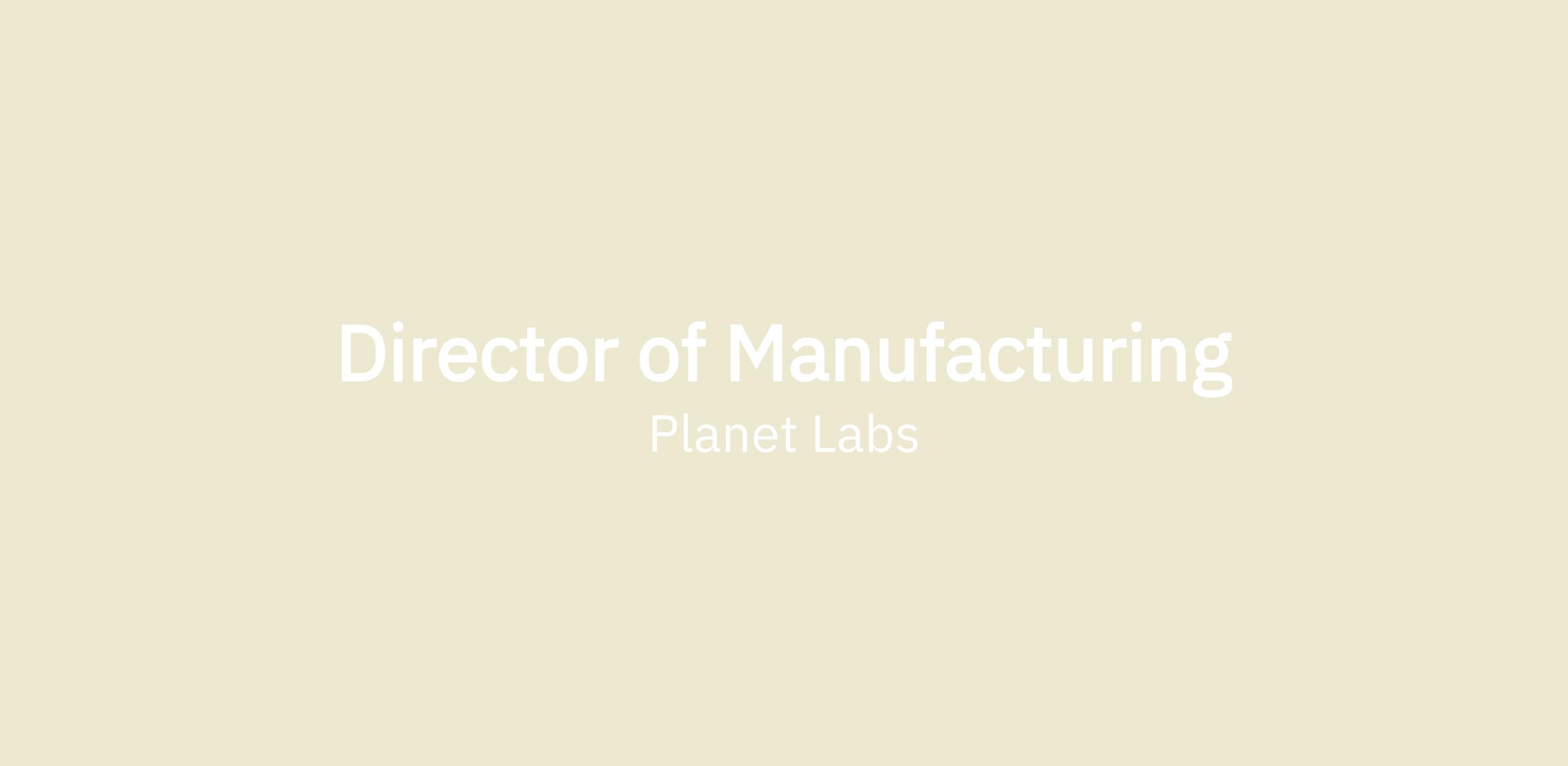 The Director of Manufacturing is charged to lead the NPI build process, manufacturing engineering and all factory operations reporting directly to the VP of Spacecraft development and MFG. Planet is looking for a well-established process and manufacturing engineer, who’s capable of managing dynamic iterations to lead continuous improvement projects, support new product launches and provide sustaining support of the manufacturing process, advocating for the needs of DFx to the development team ensuring that the products that are designed can be assembled and produced to cost, quality, and schedule standards. This is a leadership position responsible for the ownership and growth of the function.