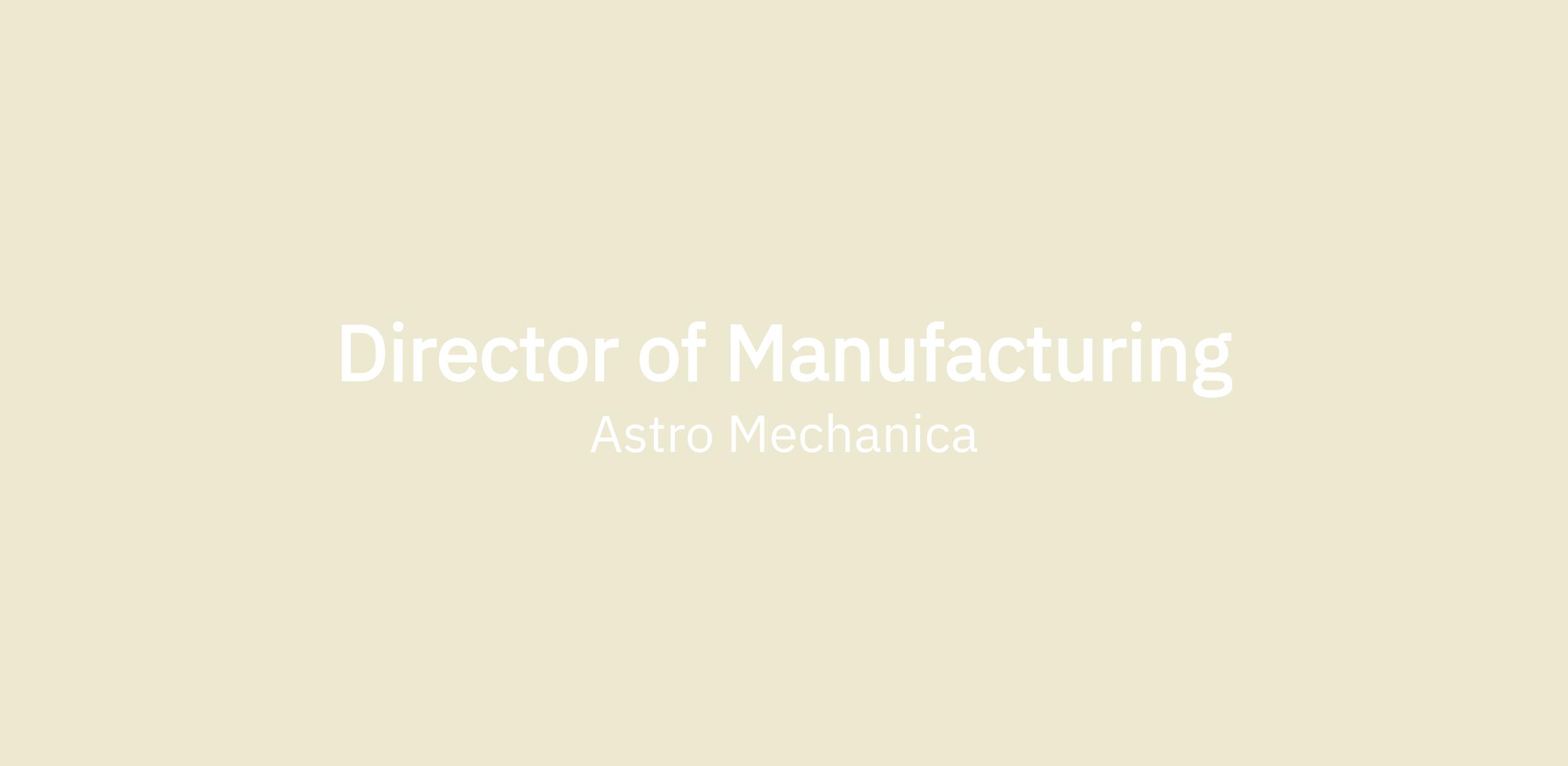Lead the manufacturing function at Astro Mechanica, building the people, processes, and capabilities required to rapidly prototype and mature both airframe and propulsion hardware.