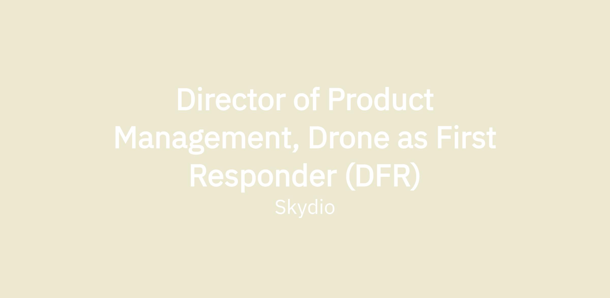 About the role: As the Director of Product Management for Skydio’s Drone as First Responder (DFR) offering, you will own the end-to-end software features spanning Skydio’s vehicle, controller and cloud platforms, that enable Public Safety and Emergency Responder customers to perform scaled remote drone operations. Skydio's DFR product provides real-time visibility to those on the frontline of emergencies and public safety scenarios. Imagine if every police patrol car had a smart drone in the trunk; Every city had drones docked in strategic locations to respond to emergencies anywhere within seconds; and every command center had operators ready to fly drones remotely. Skydio's DFR product team is leading the way to make this a reality.