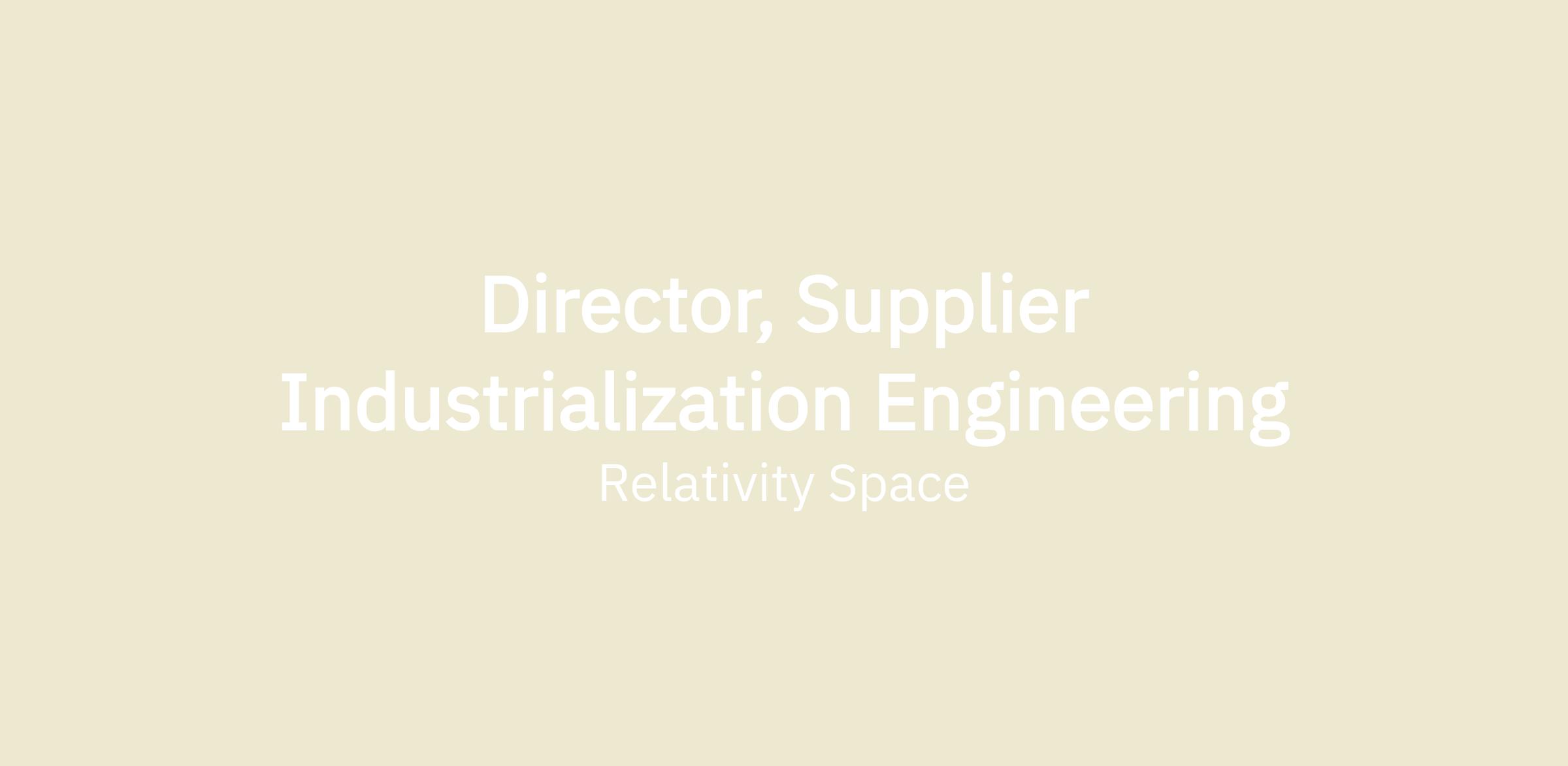 Director, Supplier Industrialization Engineering