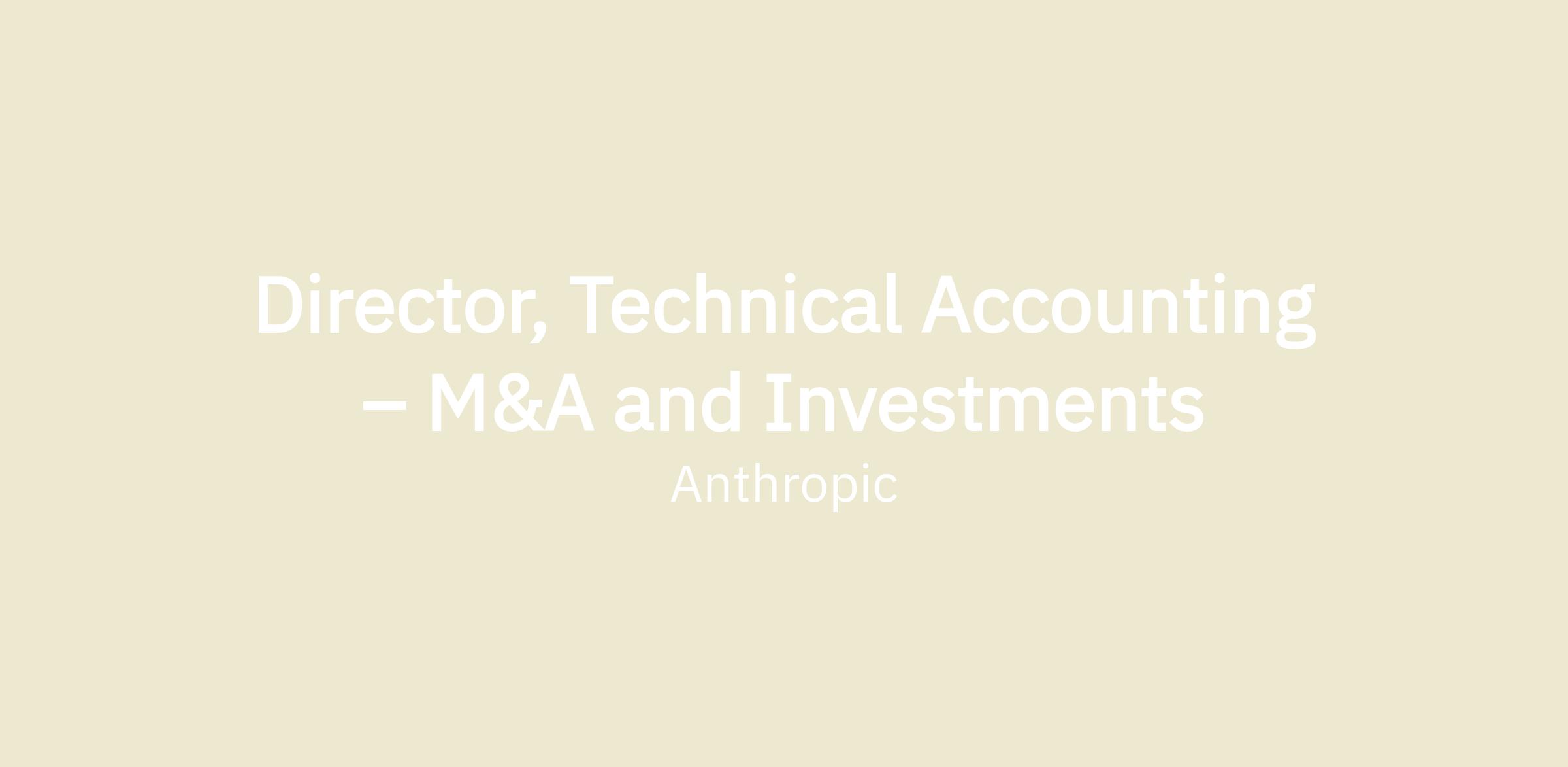 We are seeking a Director of Technical Accounting – M&A and Investments to join our Finance team at Anthropic. In this role, you will serve as the company’s principal accounting authority for mergers, acquisitions, strategic investments, and other complex capital transactions. You will own the technical accounting lifecycle for every deal — from term-sheet diligence through purchase accounting, opening balance sheet, and post-close measurement-period adjustments — and you will build the function, playbooks, and team required to execute these transactions with public-company rigor.