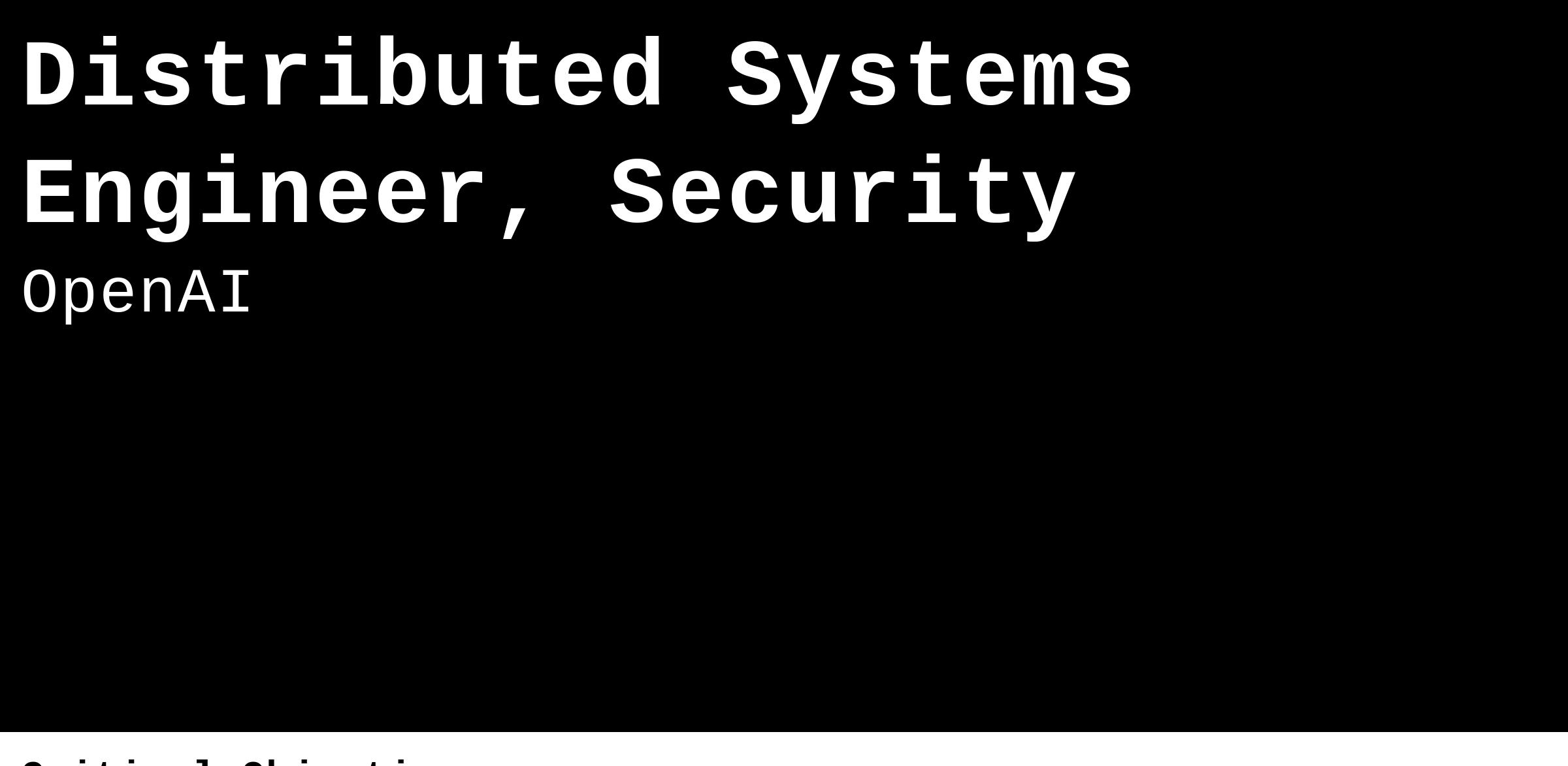 As a security-focused Distributed Systems engineer, you will build large-scale production-grade distributed systems that secure OpenAIs massive fleet. This requires both providing easy to use, introspectable systems that can promote a fast debugging and development cycle, while also enabling that experience to scale to our newest supercomputers maintaining stability and performance throughout.