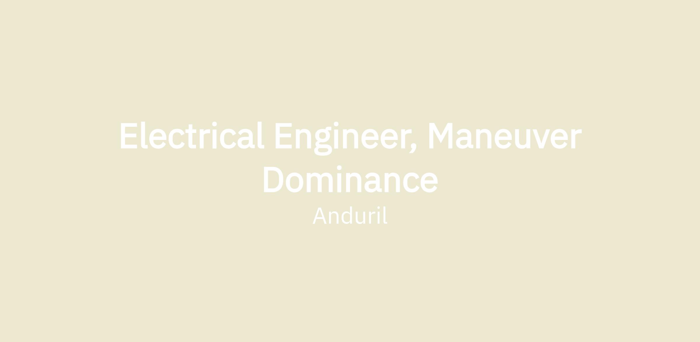 Anduril is seeking an Electrical Engineer to join the Maneuver Dominance team at our Costa Mesa HQ. The Maneuver Dominance (MD) Team at Anduril develops aerial robotic systems designed to operate in large coordinated teams in concert with ground maneuver forces. We leverage existing Anduril drone platforms like Ghost, Altius, or Roadrunner, in addition to bringing 3rd party platforms into Anduril’s Lattice ecosystem. We develop perception and autonomy algorithms to solve some of the hardest problems facing our customers.