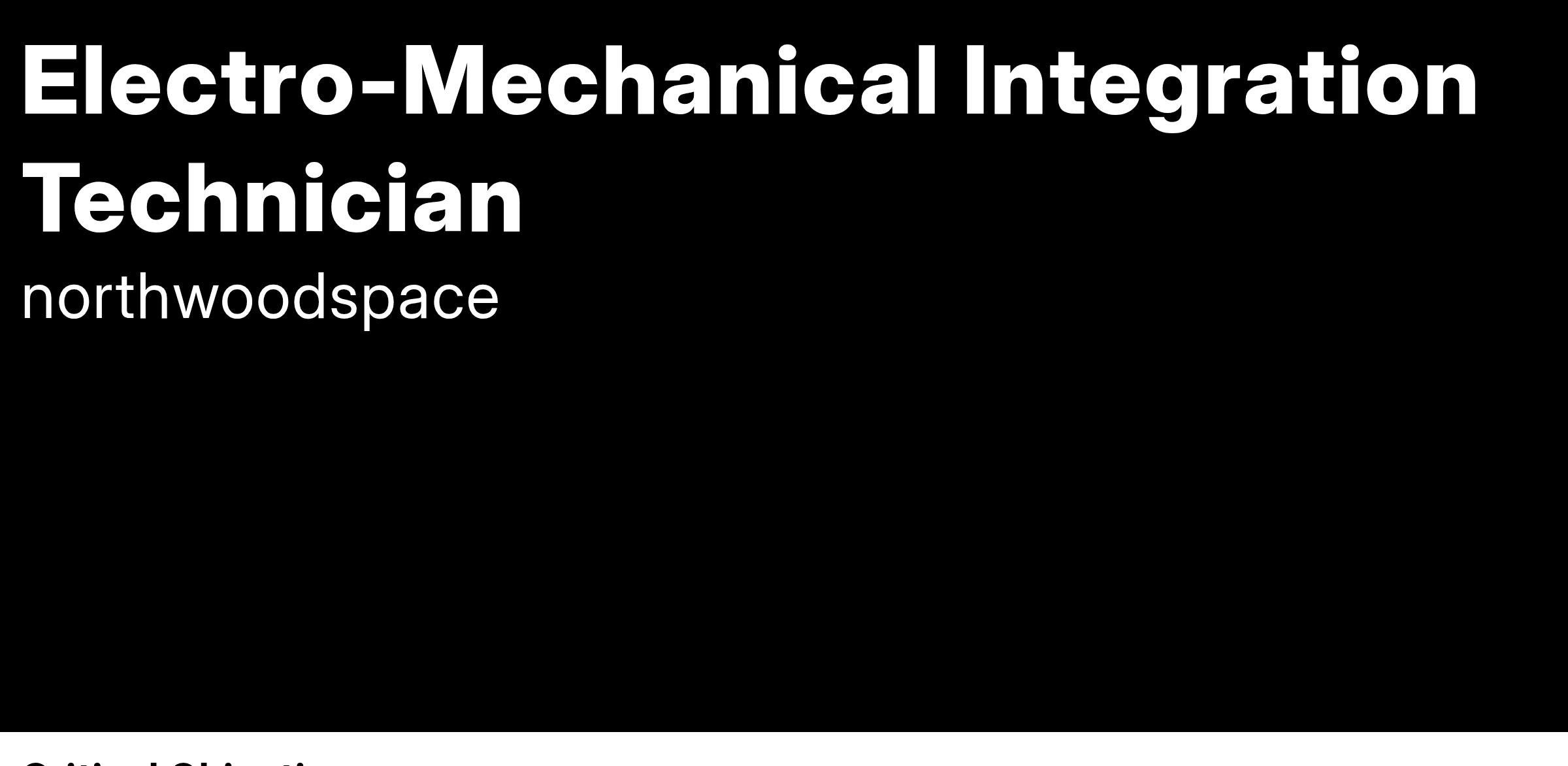 Northwood is looking for a skilled and detail-oriented Integration Technician to join our team. In this role, you will be responsible for integrating, assembling, and testing electronic and mechanical components for phased array ground station antennas and related systems. You will work closely with engineers and other technicians to ensure the seamless integration of hardware, including PCB rework, soldering, and harness fabrication. Your work will help ensure the reliability and functionality of advanced RF and avionics systems.