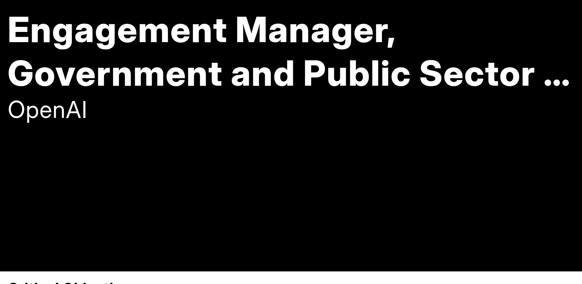 The Engagement Management team ensures the successful post-sales deployment and value realization of ChatGPT for customers across industries. Engagement Managers collaborate closely with Sales, Technical Success, and Product teams to deliver exceptional AI experiences and measurable business results. As an Engagement Manager focused on our public sector customers, you’ll help government entities transform their operations by adopting solutions that make use of our newest, most exciting models.
