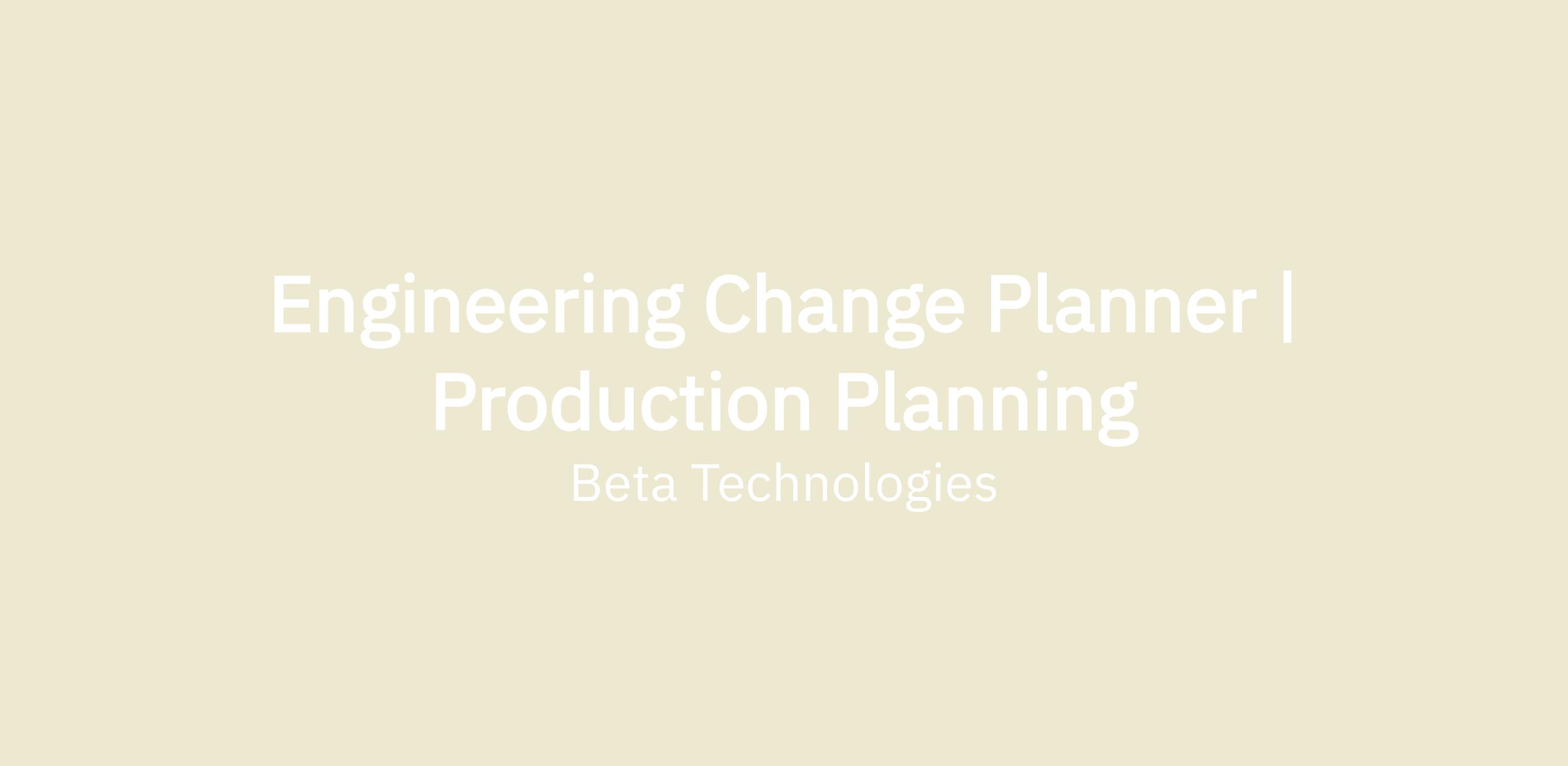 BETA Technologies is seeking an Engineering Change Planner to help define the future of flight. You will work with a highly motivated, cross-functional team to bring radical aircraft to production. By bringing innovation to change implementation, you will be a critical part of BETA realizing its aggressive manufacturing goals while ensuring the highest standards of quality and safety in the industry. This means stepping in and providing an immediate positive impact to BETA in our march to full production.