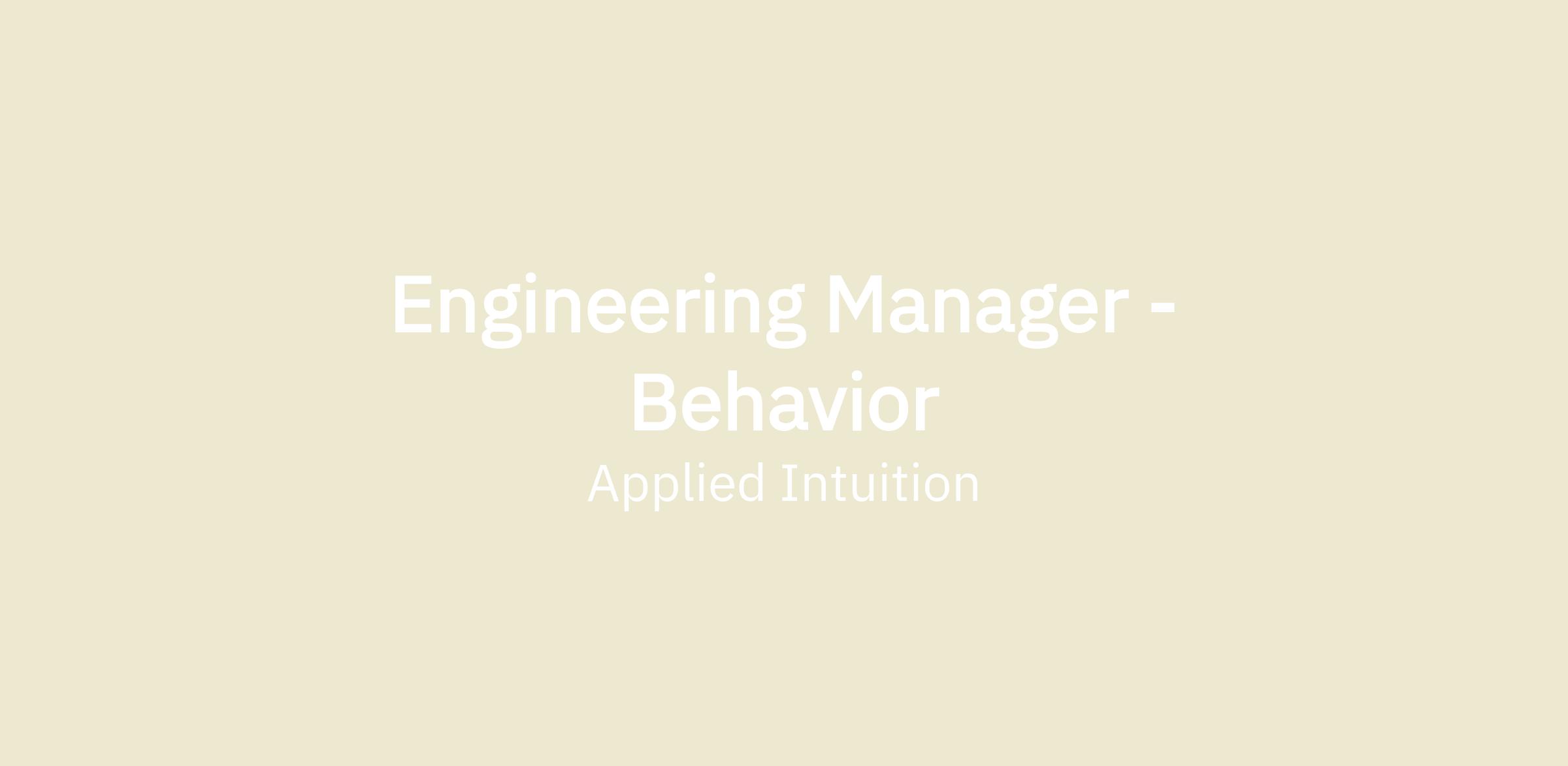 - As an Engineering Manager on the SDS Behavior team, you’ll lead a world-class group of engineers focused on building and deploying scalable behavior systems for cars, trucks, mining & construction, and offroad applications